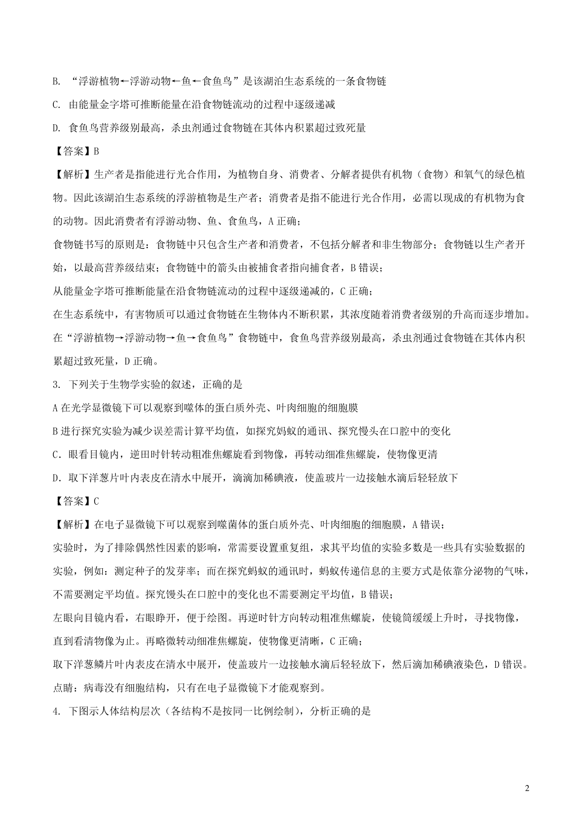 2.山东省泰安市2018年中考生物真题试题(含答案)