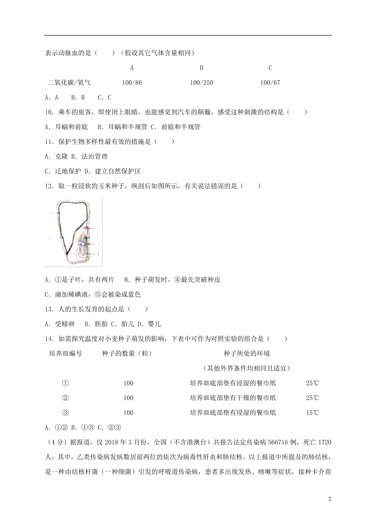 2.江苏省扬州市2018年中考生物真题试题(含解析)