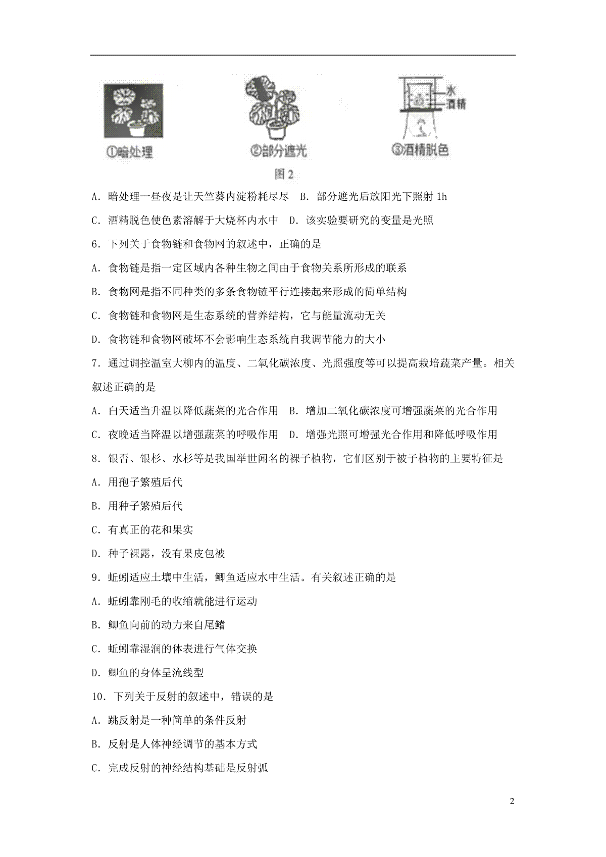 下载江苏省连云港市2018年中考生物真题试题(含答案)PDF格式或doc