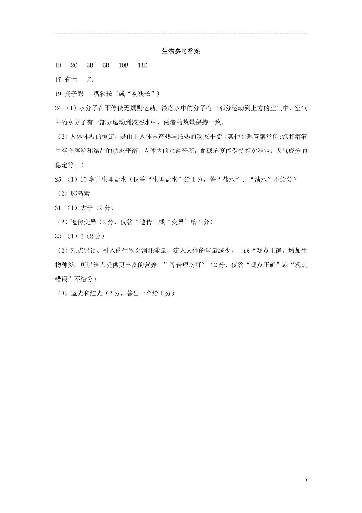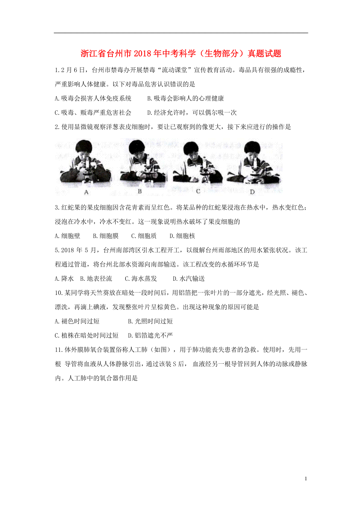 1.浙江省台州市2018年中考科学(生物部分)真题试题(含答案)