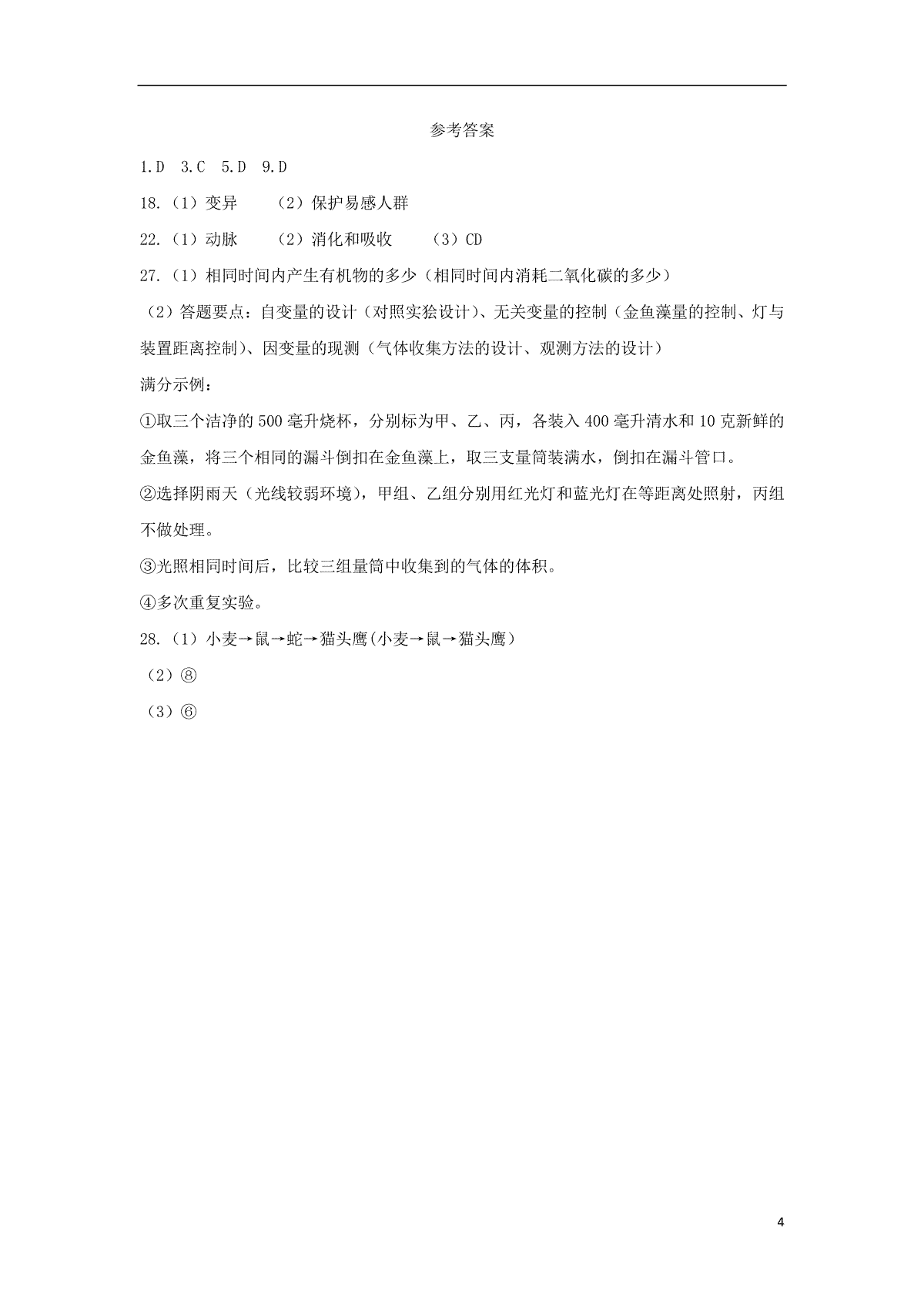 3.浙江省杭州市2018年中考科学(生物部分)真题试题(含答案)