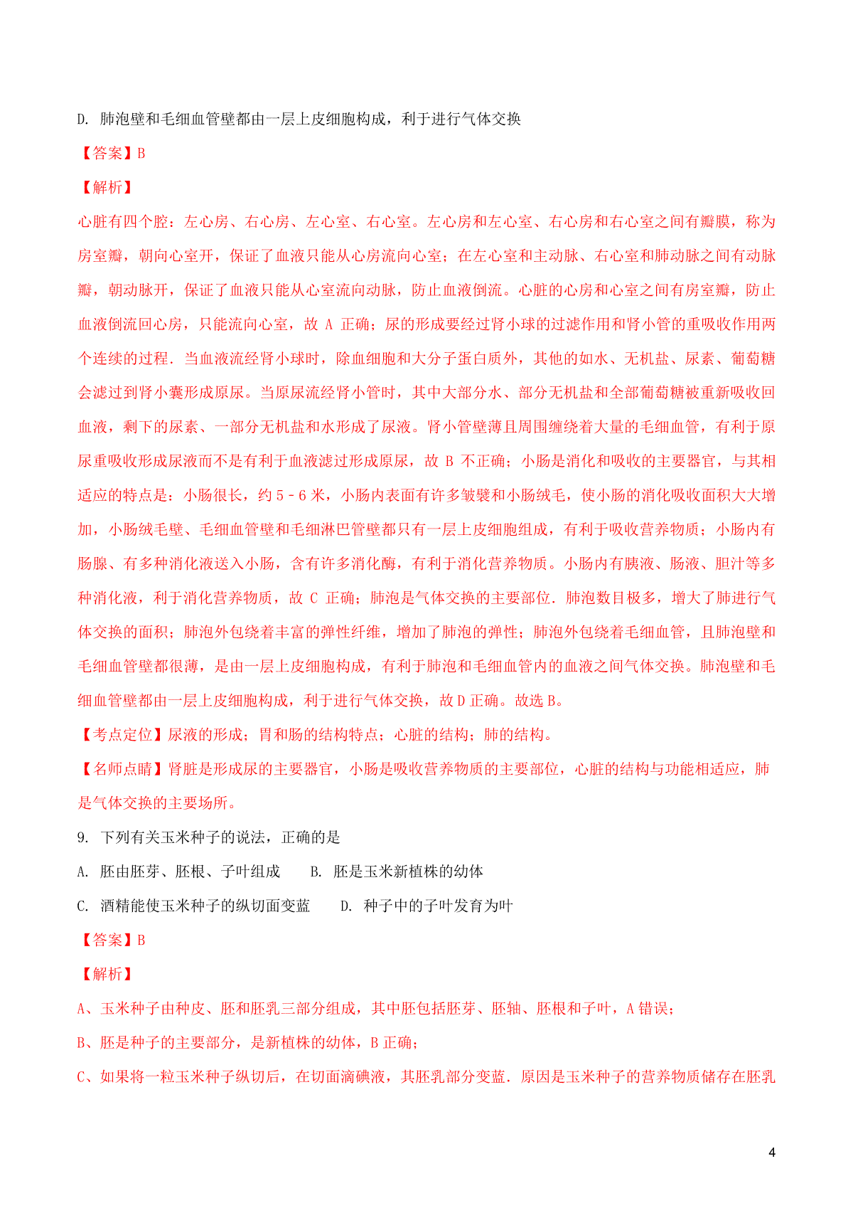 4.湖北省孝感市2018年中考生物真题试题(含解析)