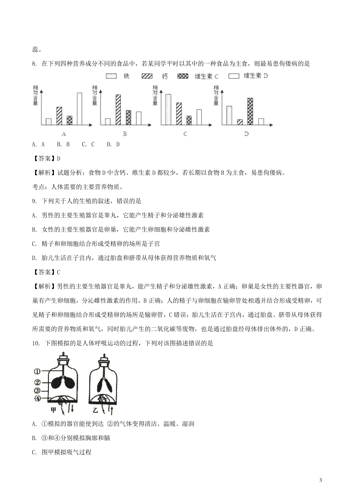 4.湖南省湘西土家族苗族自治州2018年中考生物真题试题(含解析)