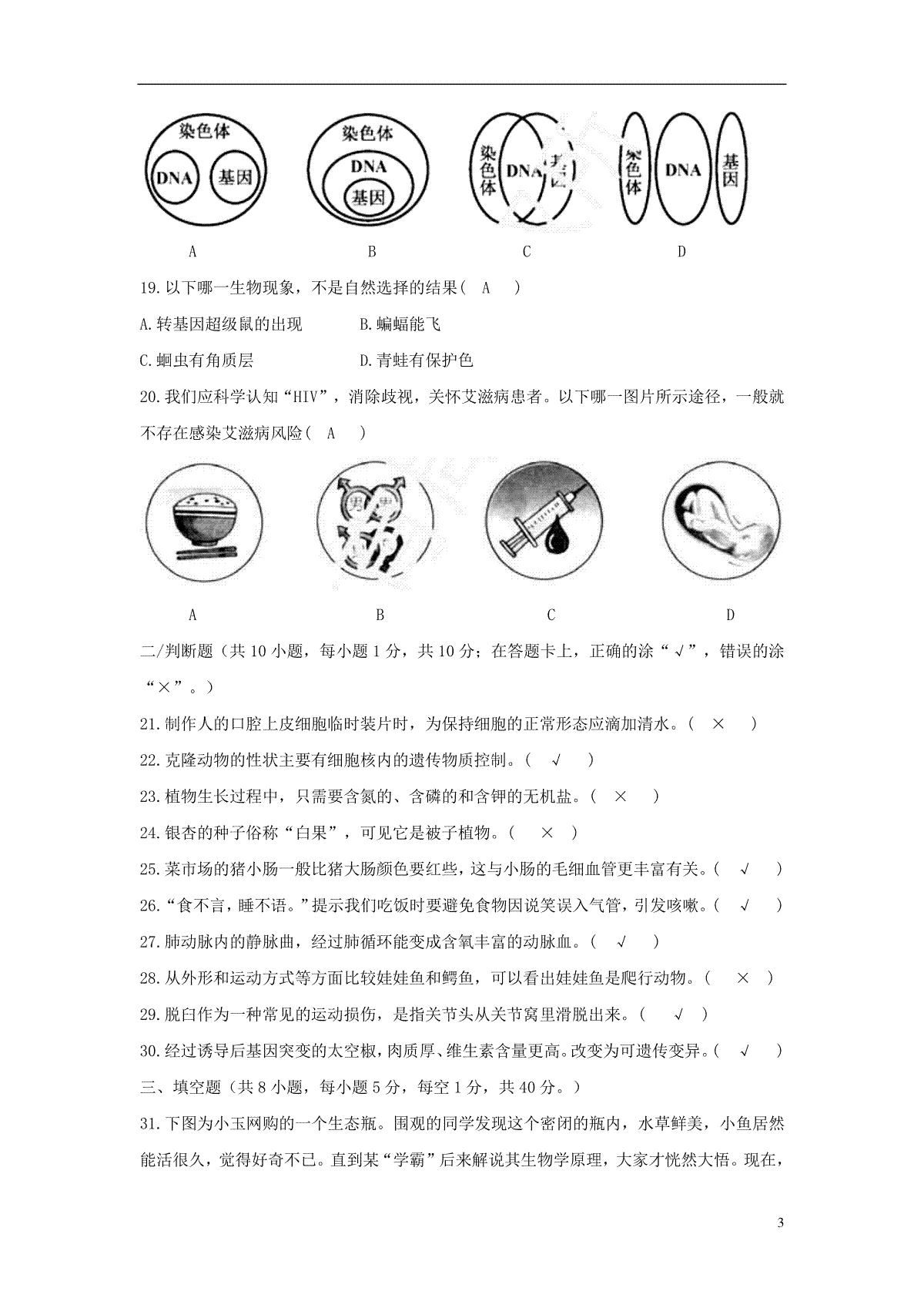3.湖南省邵阳市2018年中考生物真题试题(含答案)