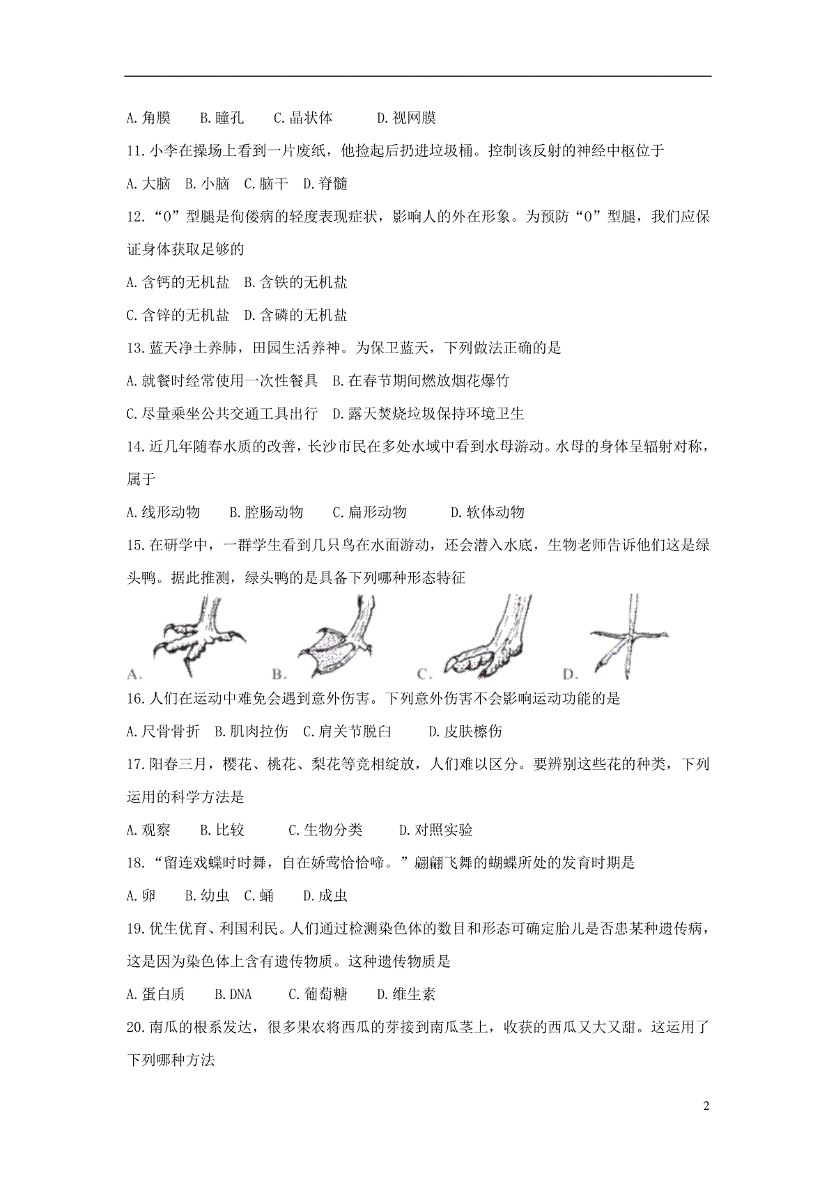 下载湖南省长沙市2018年中考生物真题试题(含答案)PDF格式或doc