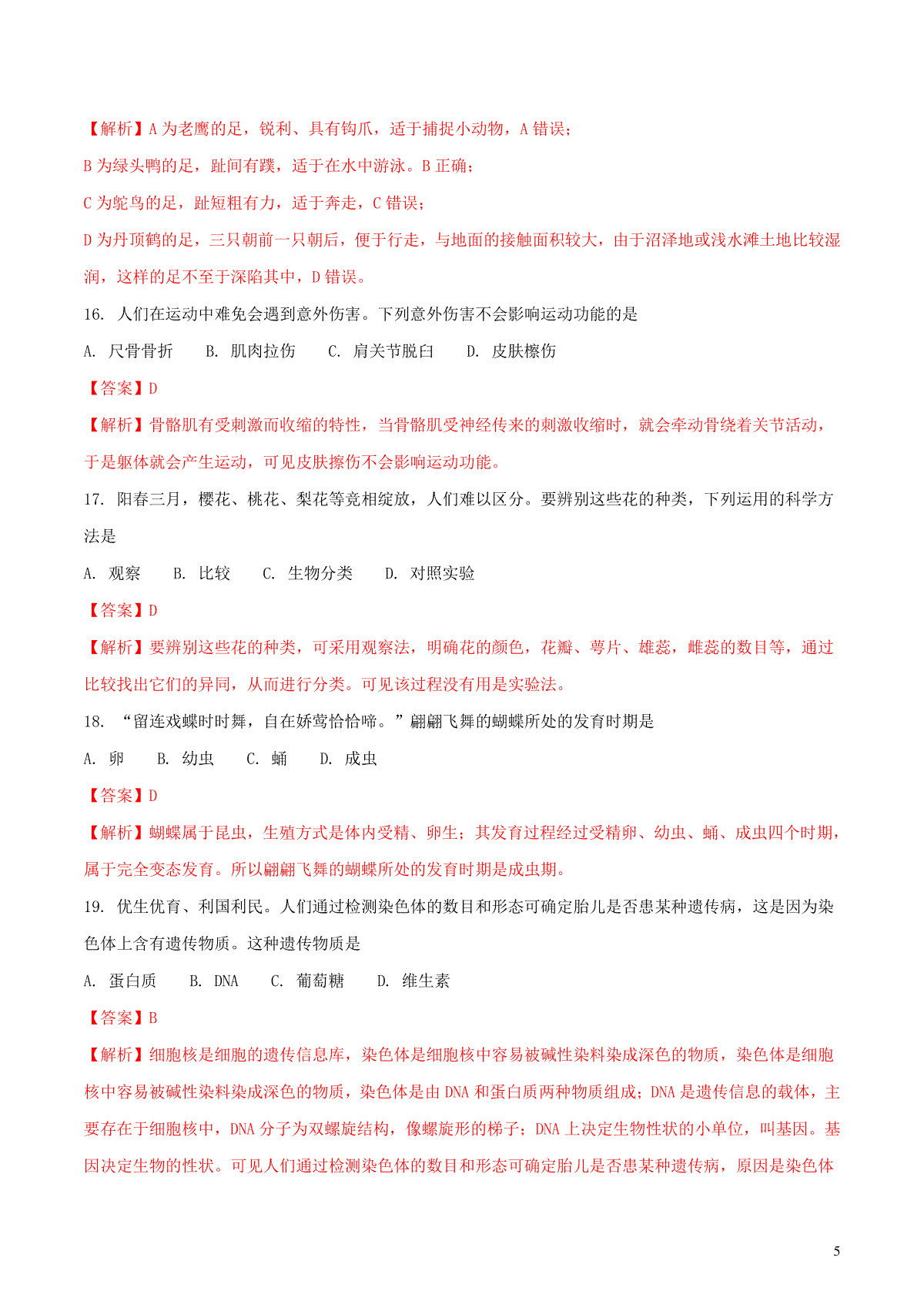 5.湖南省邵阳市2018年中考生物真题试题(含解析)
