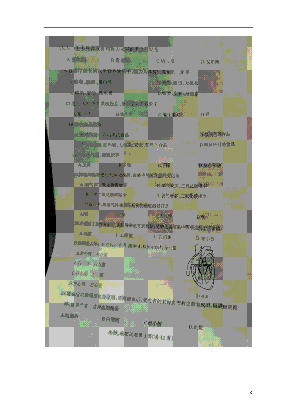 1.黑龙江省大庆市2018年中考生物真题试题(扫描版,含答案)