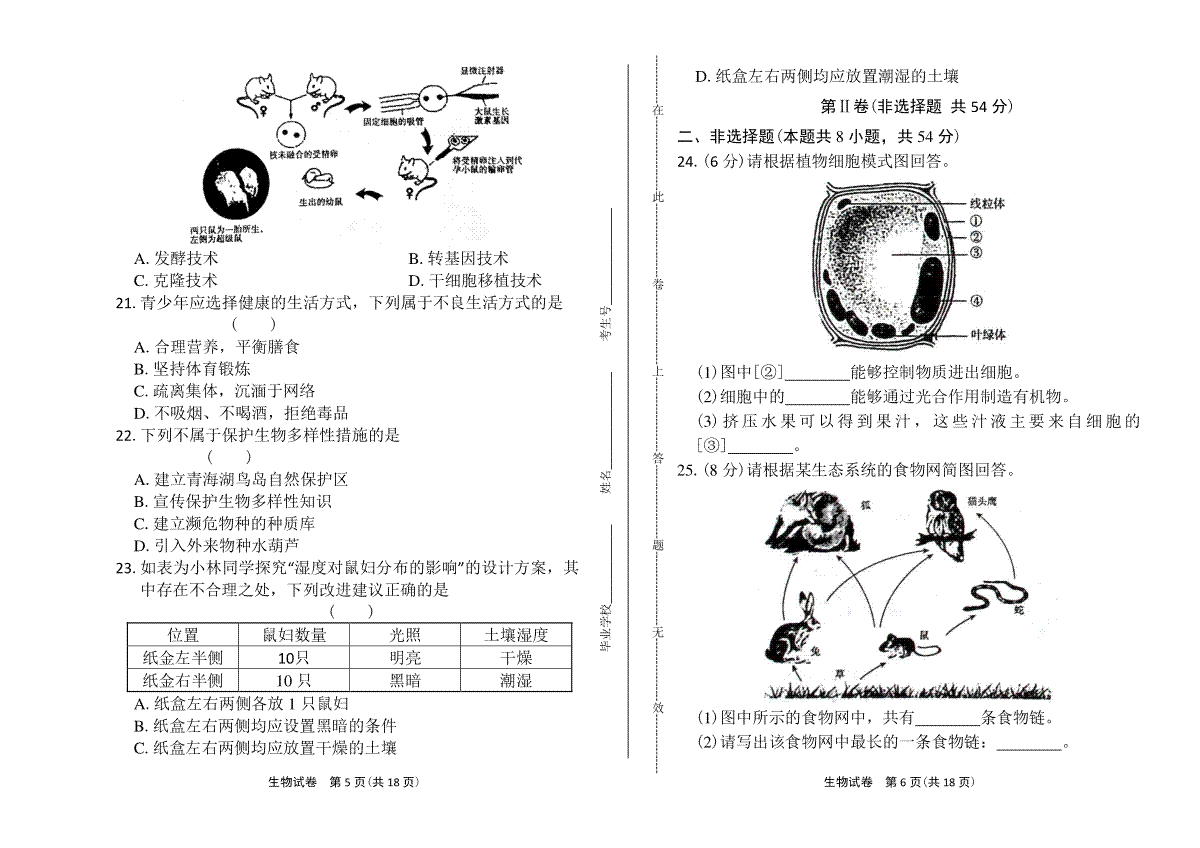 下载2019年天津市中考生物试卷及答案解析PDF格式或doc