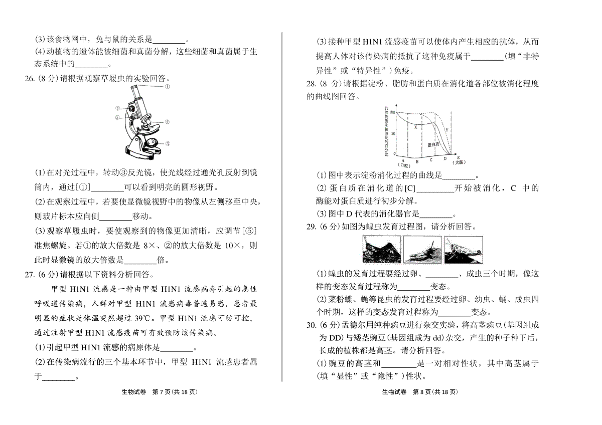 7.精品解析:2019年山东省潍坊市中考生物试题(原卷版)
