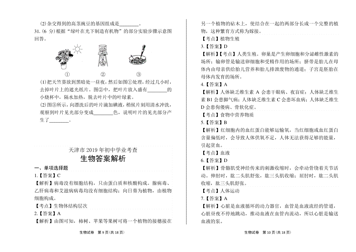 如果你想下载2019年天津市中考生物试卷及答案解析DOC或PDF版,请点击本文末链接!