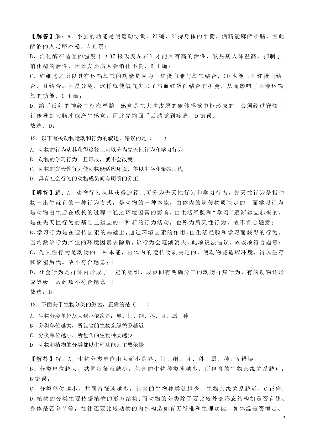 3.2019年湖南省株洲市中考生物试题(word版,含解析)