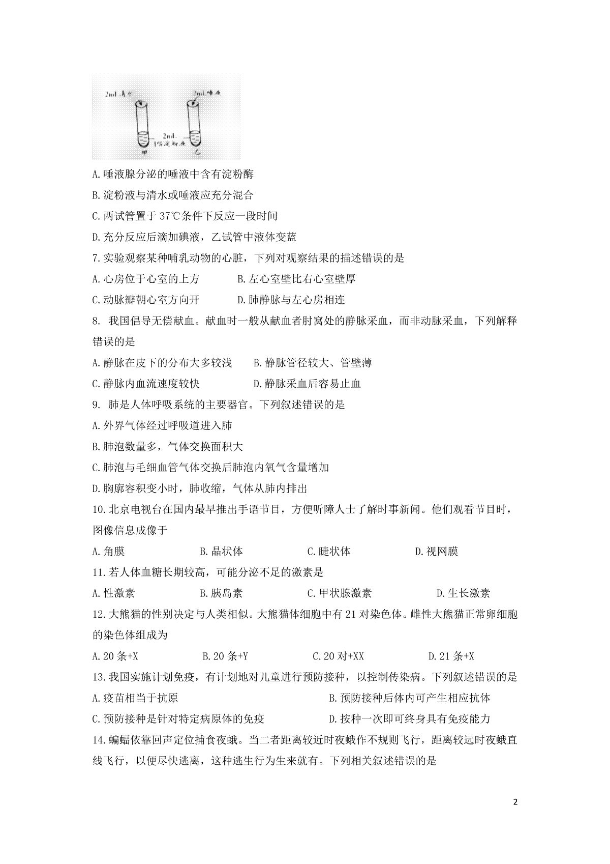 5.2019年山东省济宁市中考生物试题(Word版,含解析)