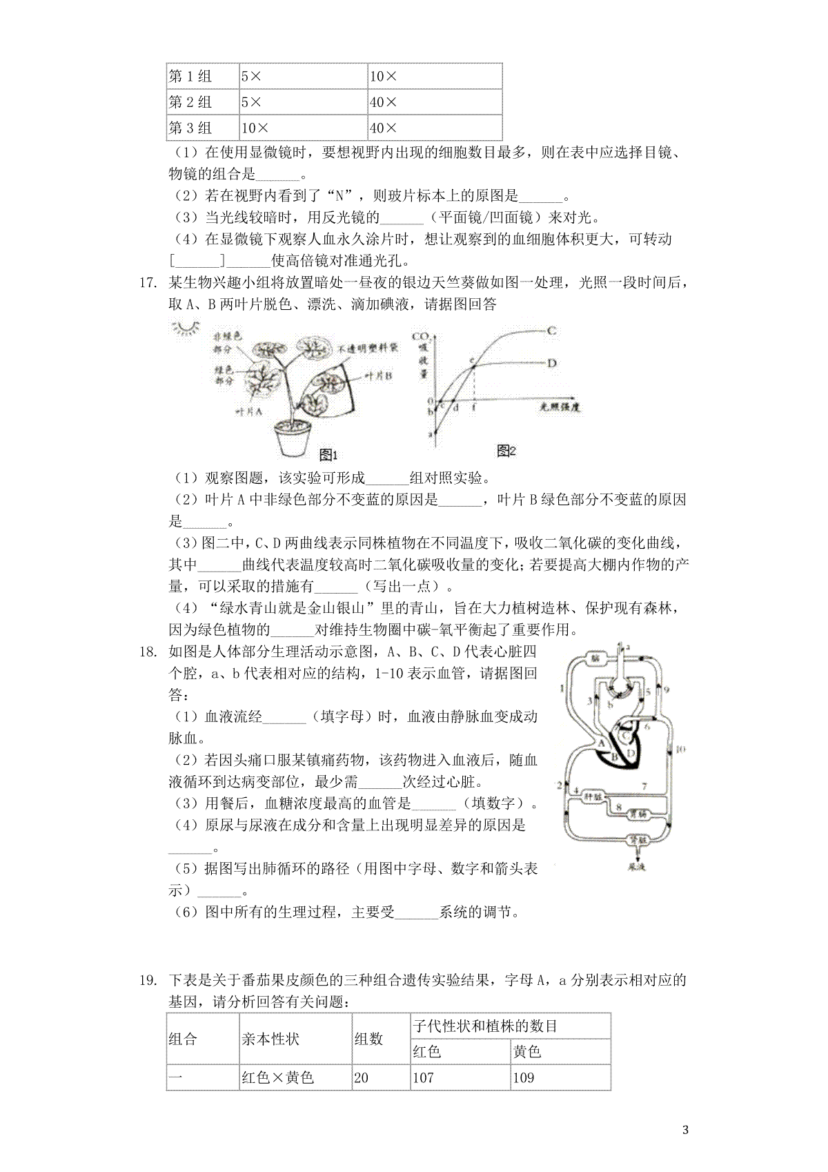 湖南省益阳市2015年中考生物真题试题(含扫描答案)