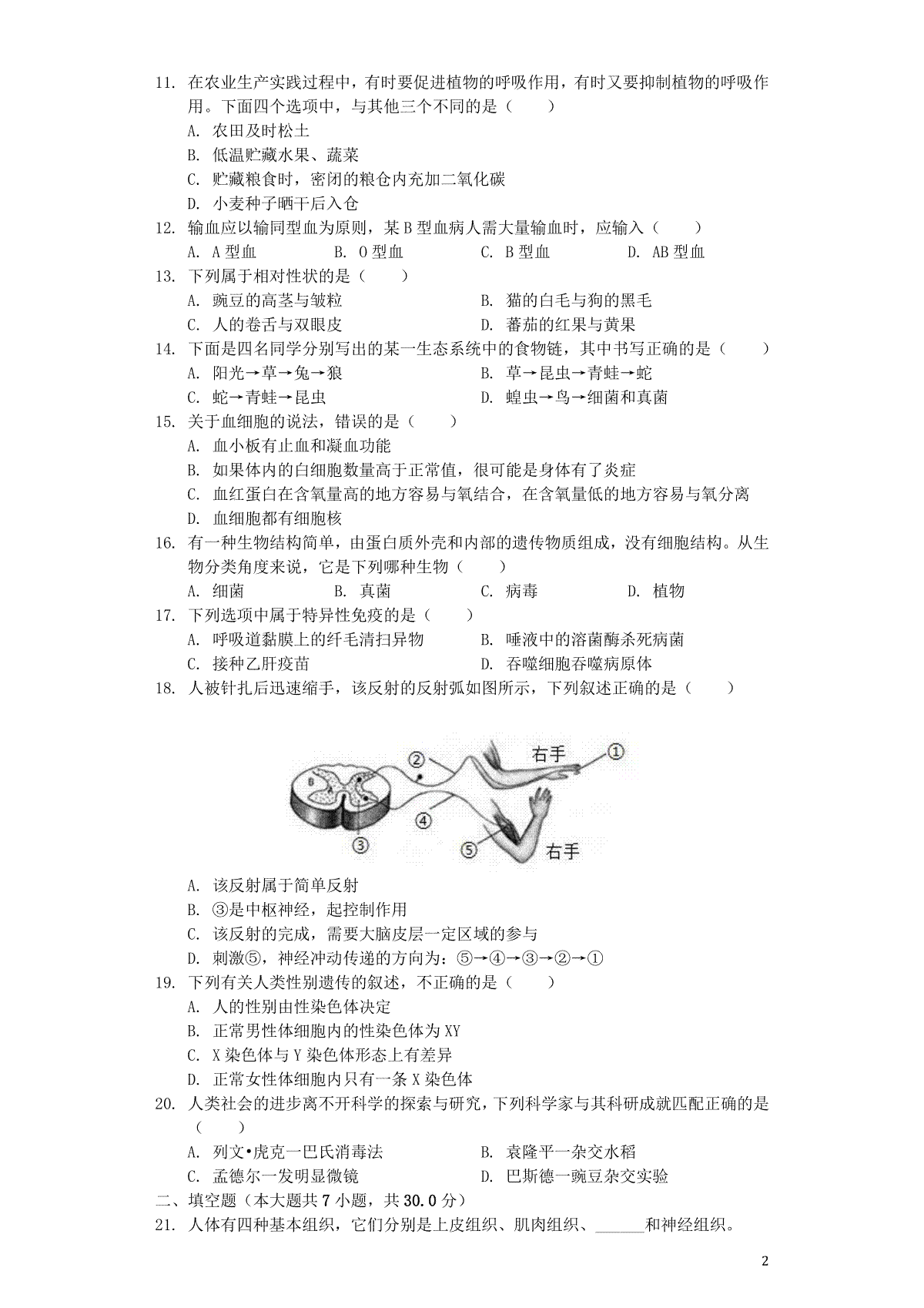 7.北京市2019年中考生物真题试题
