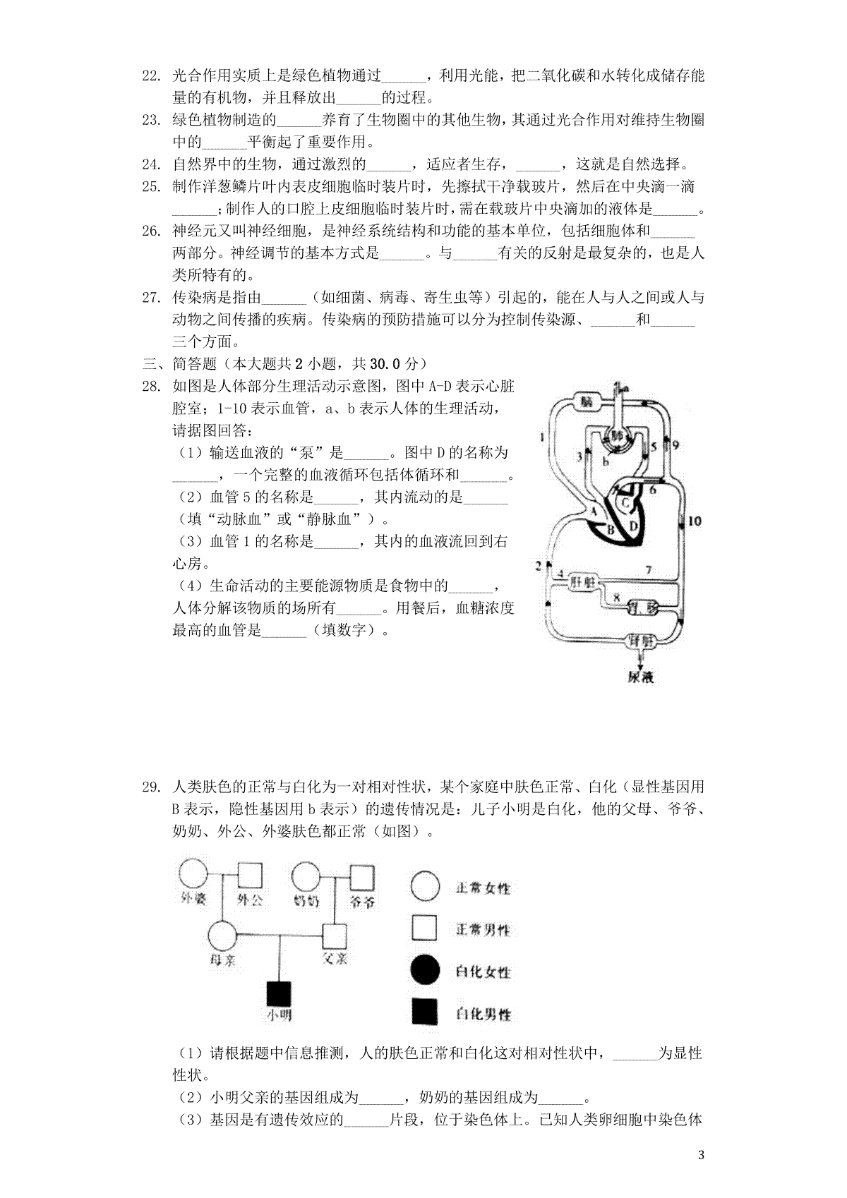 湖南省益阳市2015年中考生物真题试题(含扫描答案)