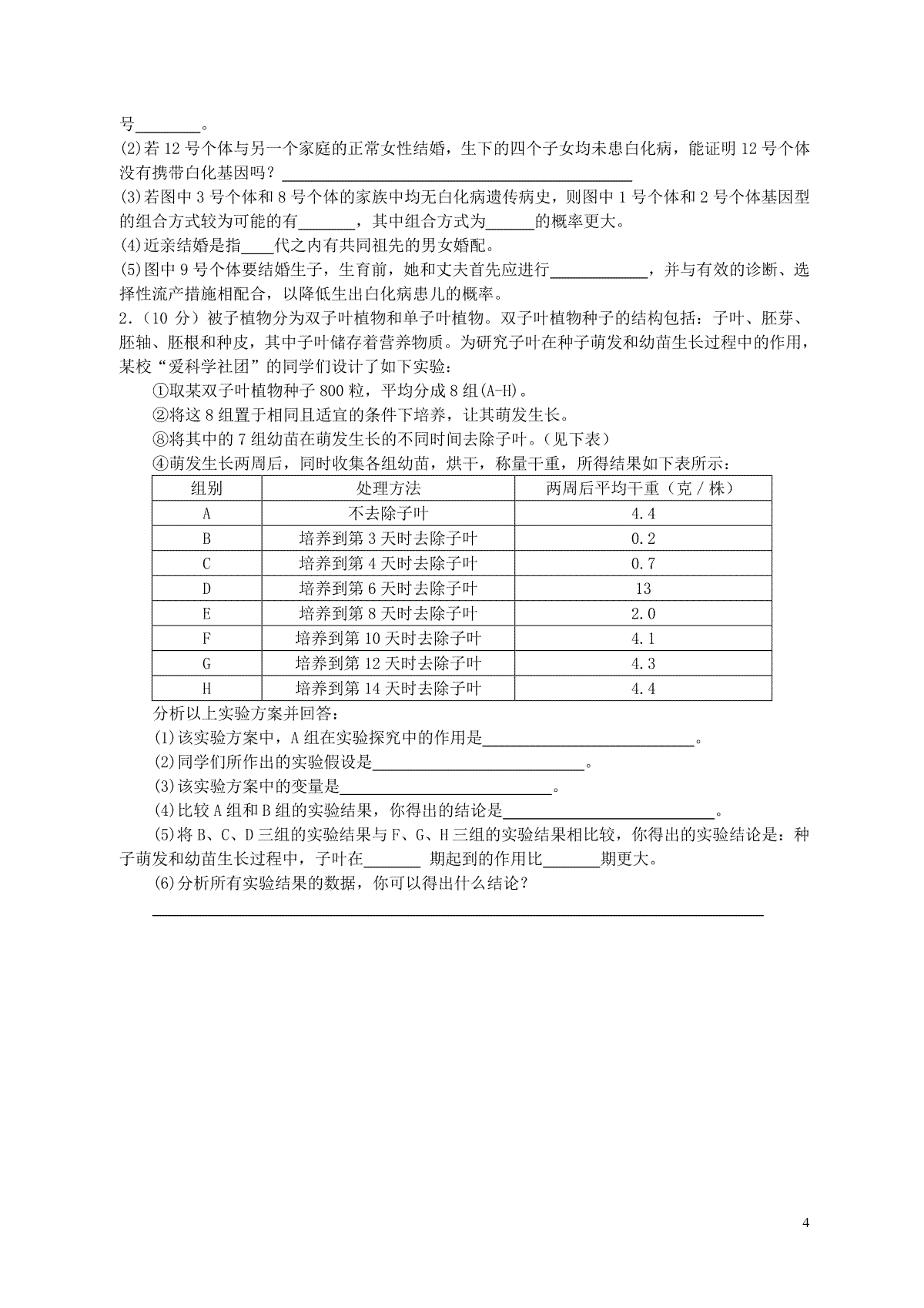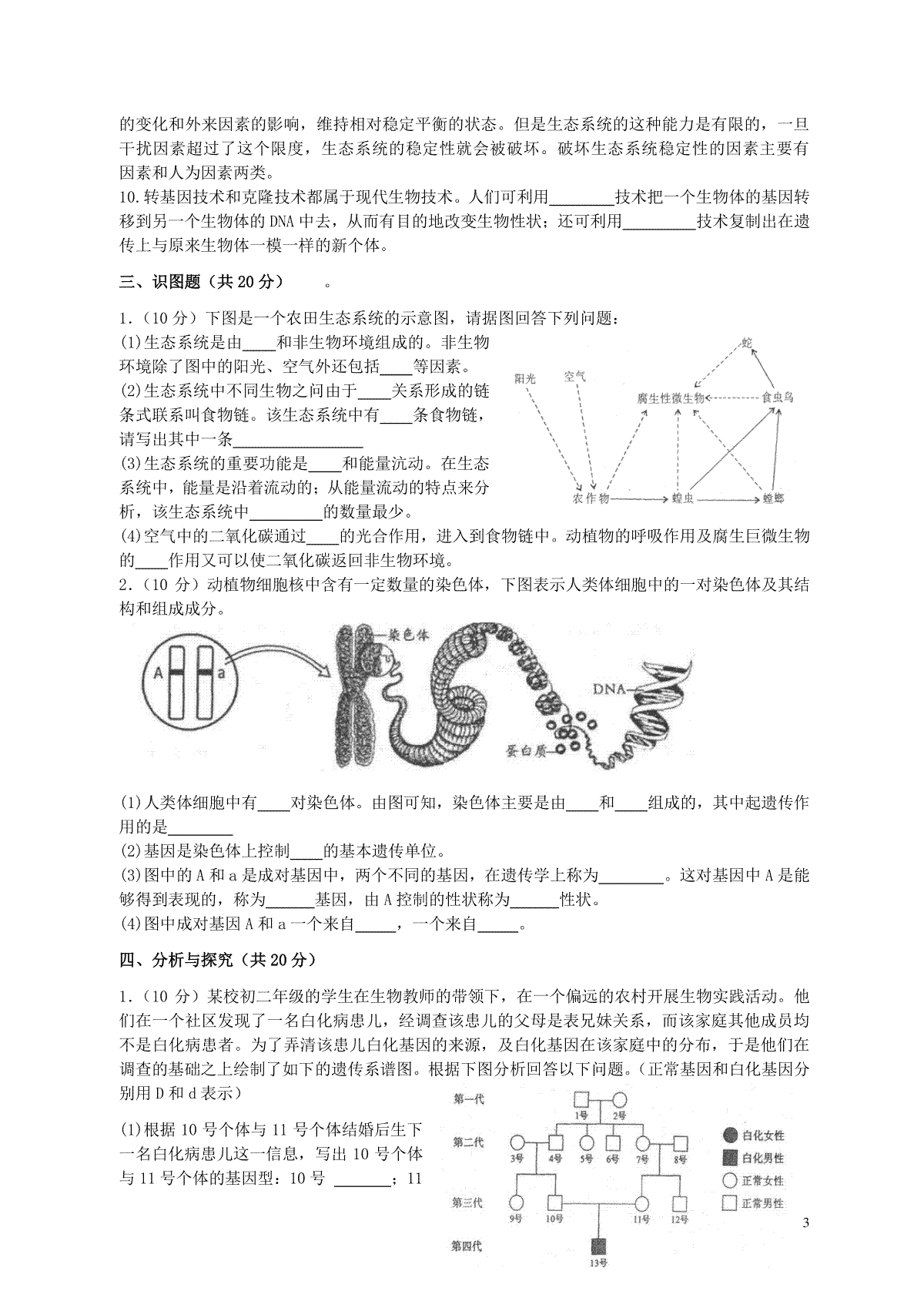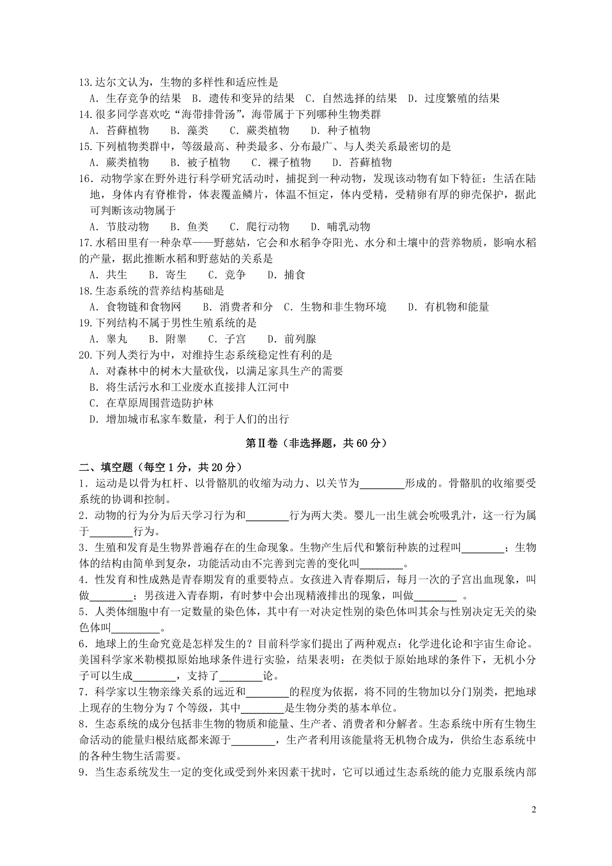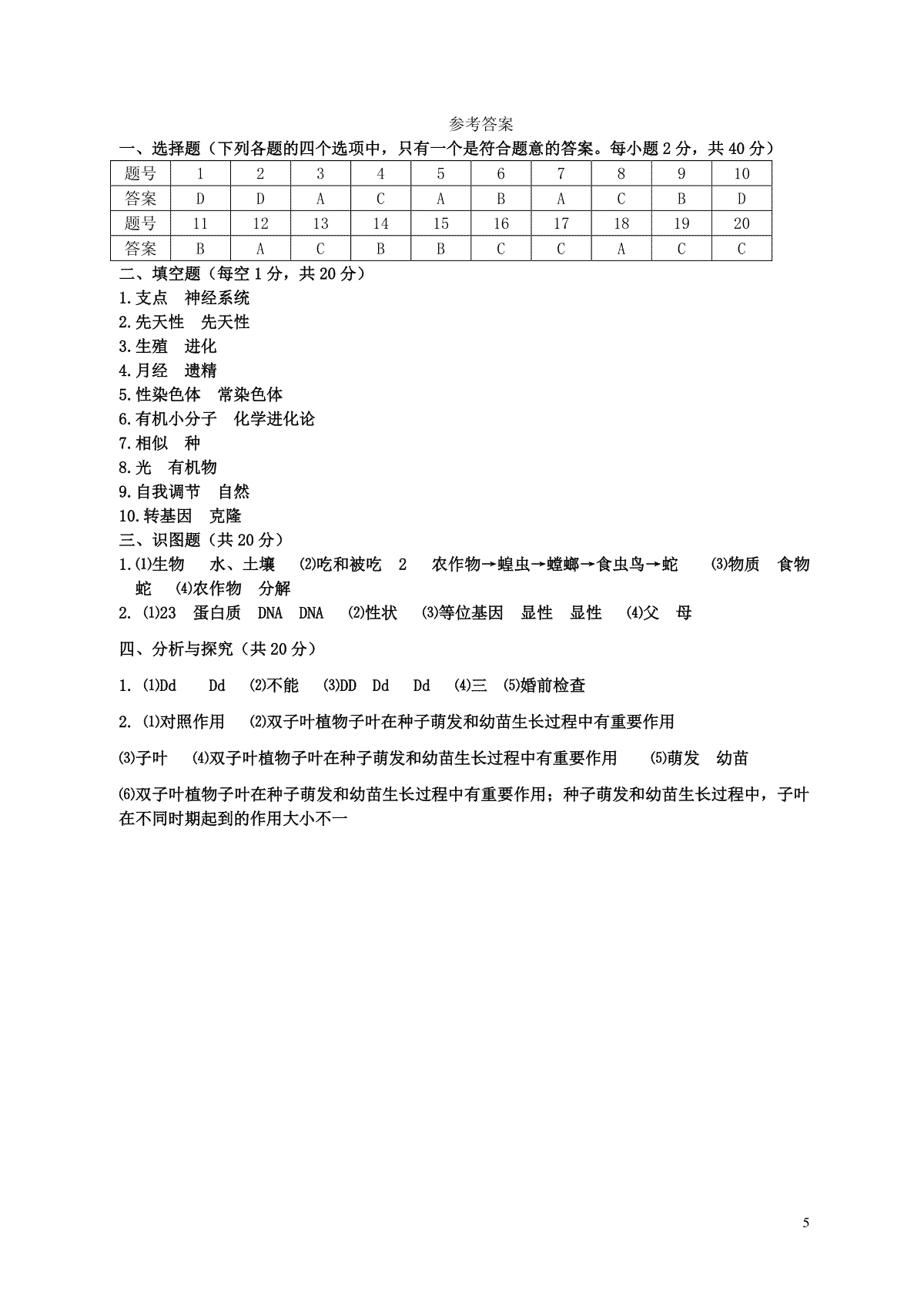 湖南省益阳市2015年中考生物真题试题(含扫描答案)