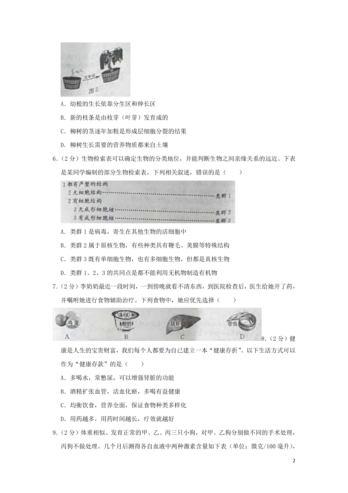 湖南省益阳市2015年中考生物真题试题(含扫描答案)