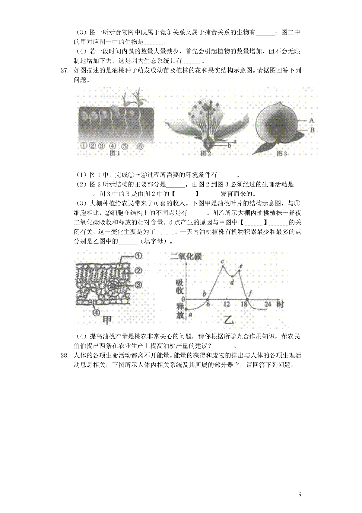 湖南省益阳市2015年中考生物真题试题(含扫描答案)