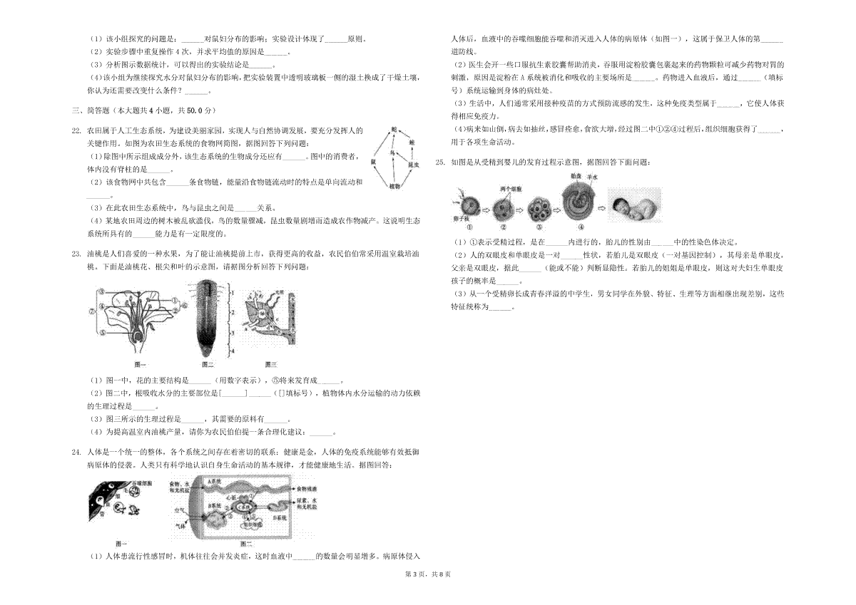 2.山东省泰安市2019年中考生物真题试题(扫描版)