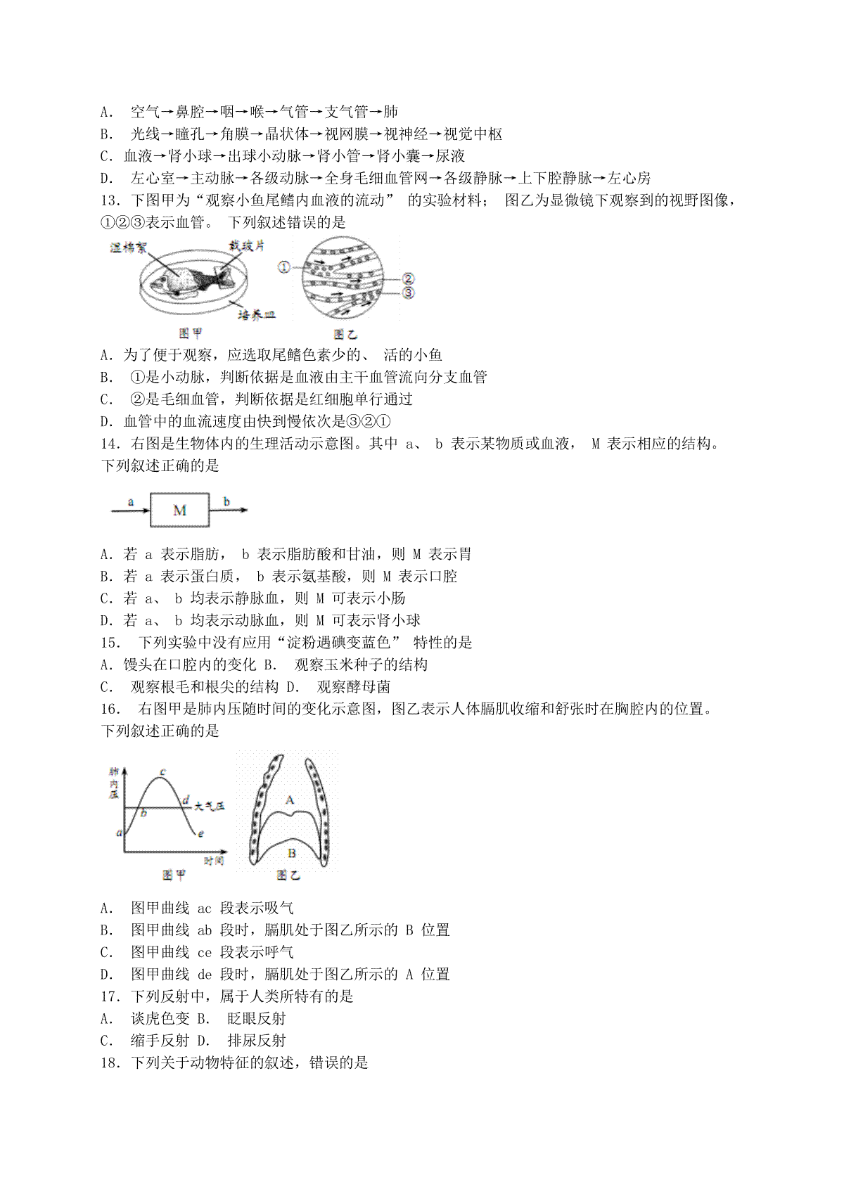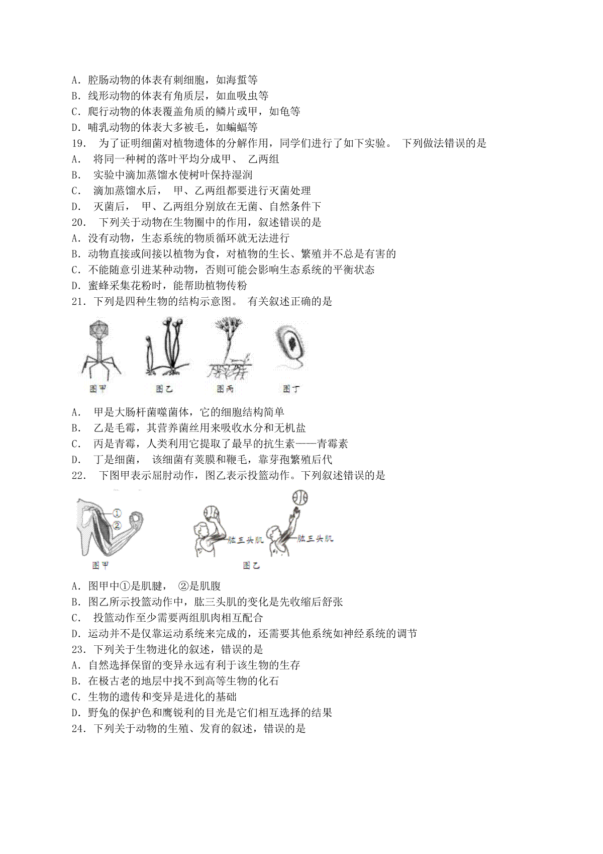 7.山东省泰安市2019年中考生物真题试题(扫描版)