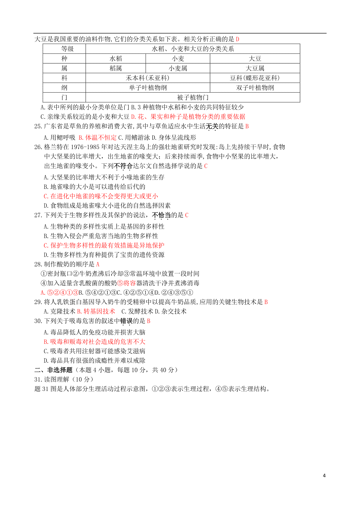 下载广东省2019年中考生物真题试题PDF格式或doc
