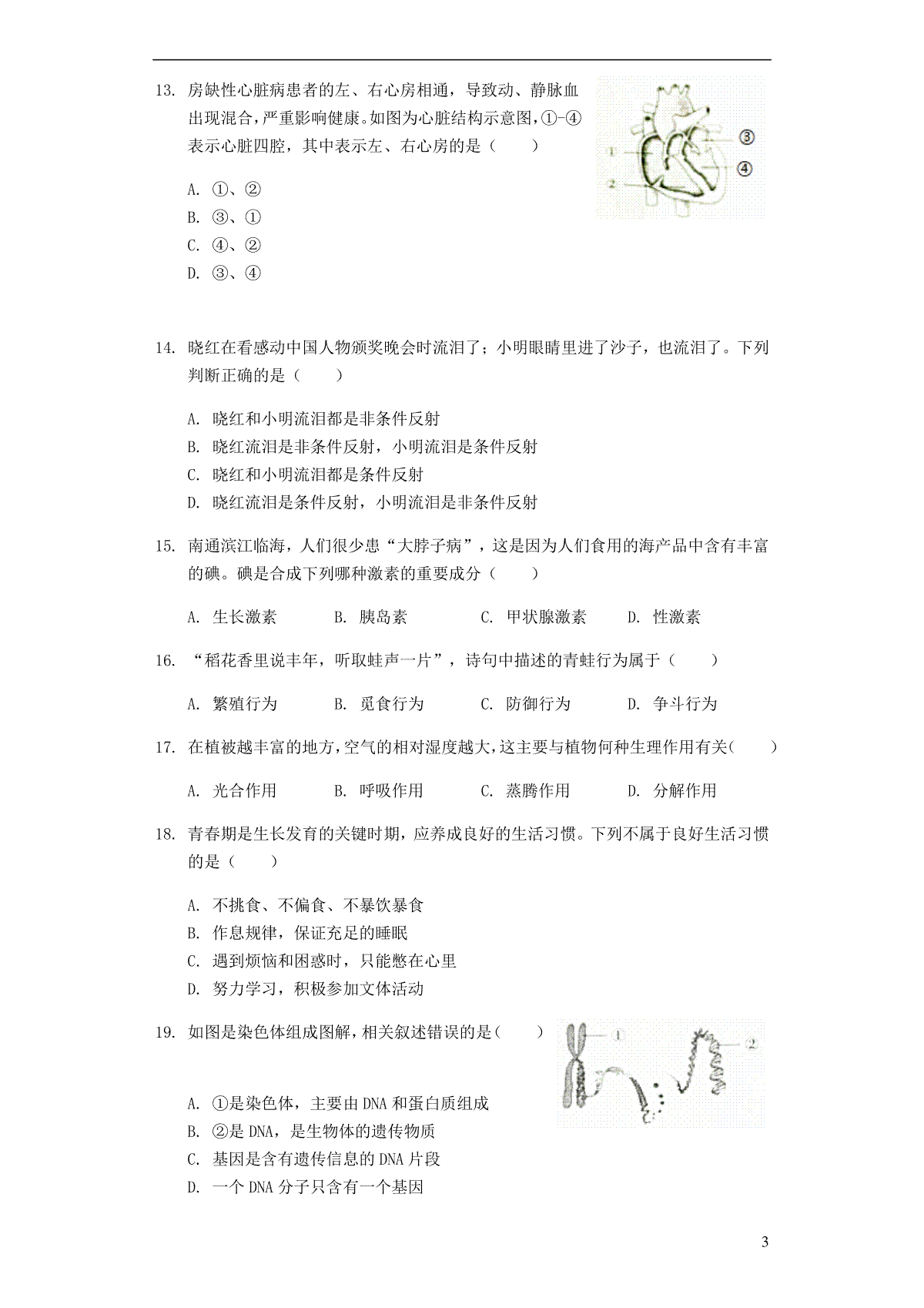 3.新疆2019年中考生物真题试题