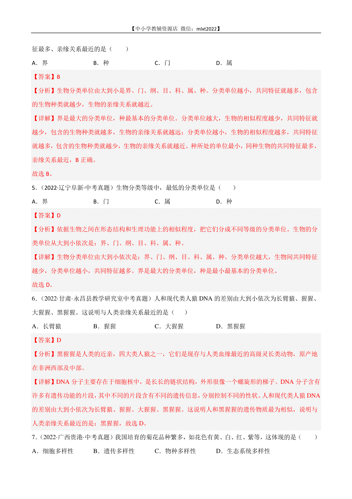 如果你想下载专题10 生物的分类、进化和多样性保护-2022年中考生物真题分项汇编(全国通用)(第4期)(解析版DOC或PDF版,请点击本文末链接!