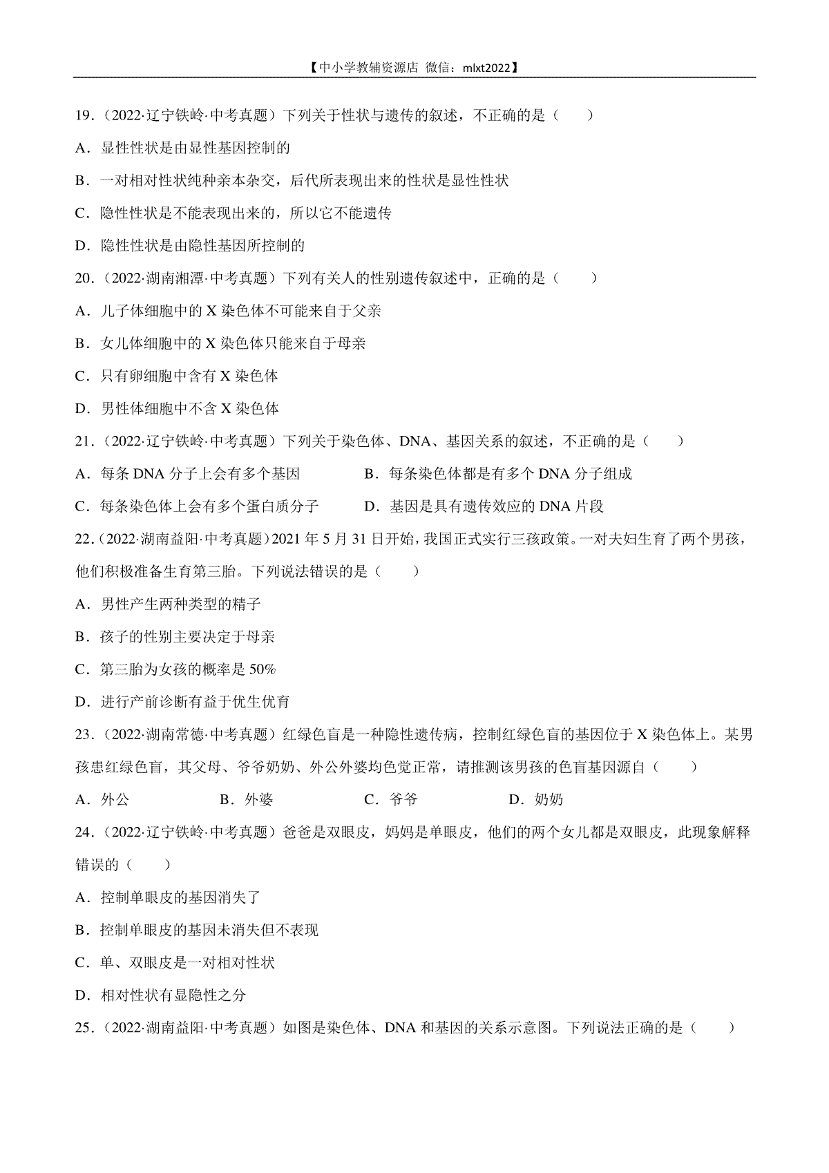 1.专题12 生物的遗传和变异-2022年中考生物真题分项汇编(全国通用)(第4期)(原卷版)
