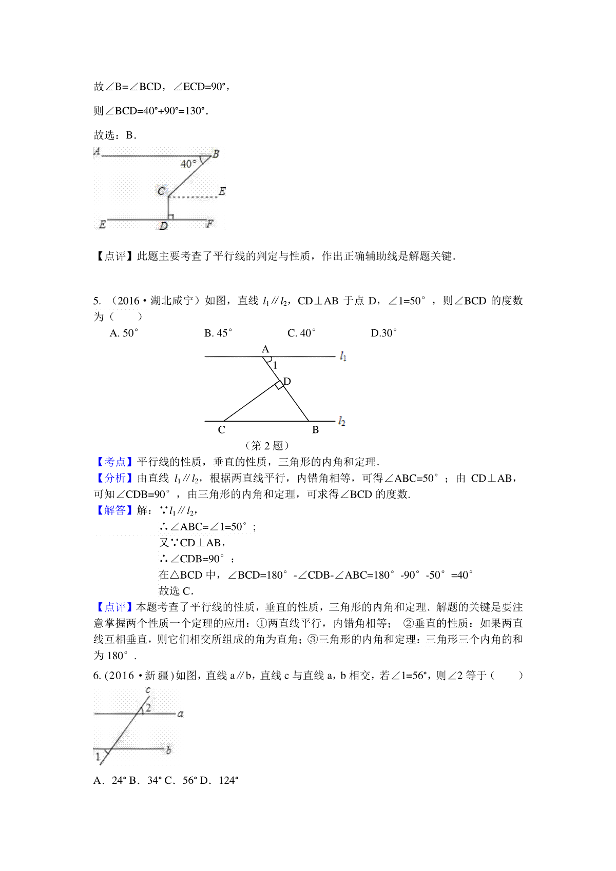 1.2016年各地中考数学解析版试卷分类汇编(第一期):相交线与平行线