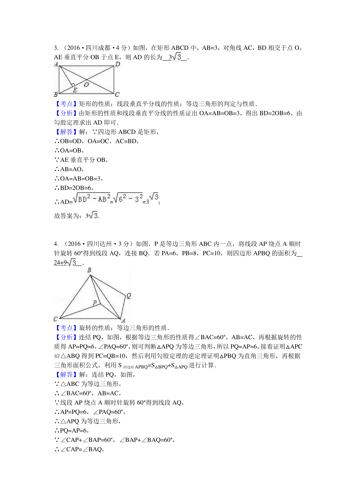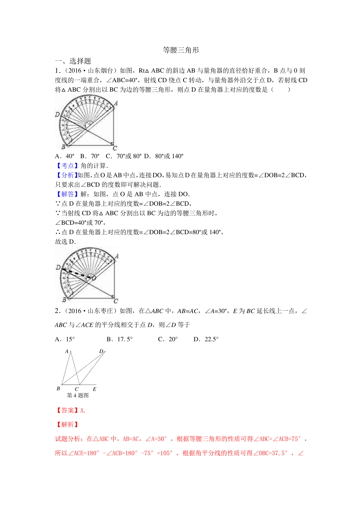 一、2016年各地中考数学解析版试卷分类汇编(第一期):等腰三角形
