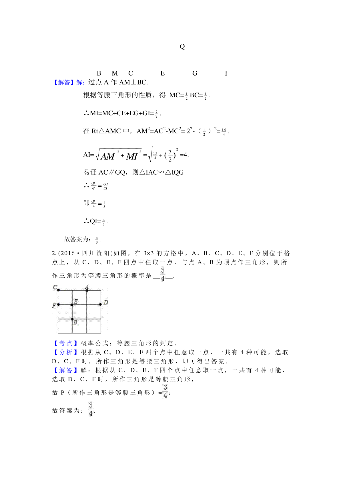 1.2016年各地中考数学解析版试卷分类汇编(第一期):等腰三角形
