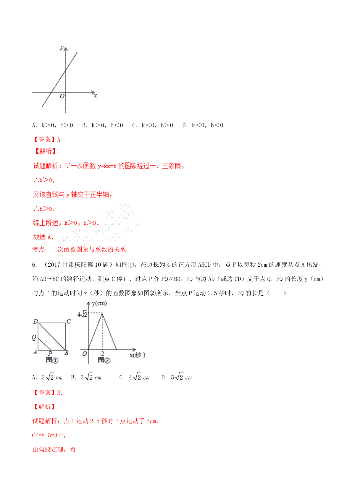 一、专题06 函数的图像与性质(第01期)-2017年中考数学试题分项版解析汇编(解析版)