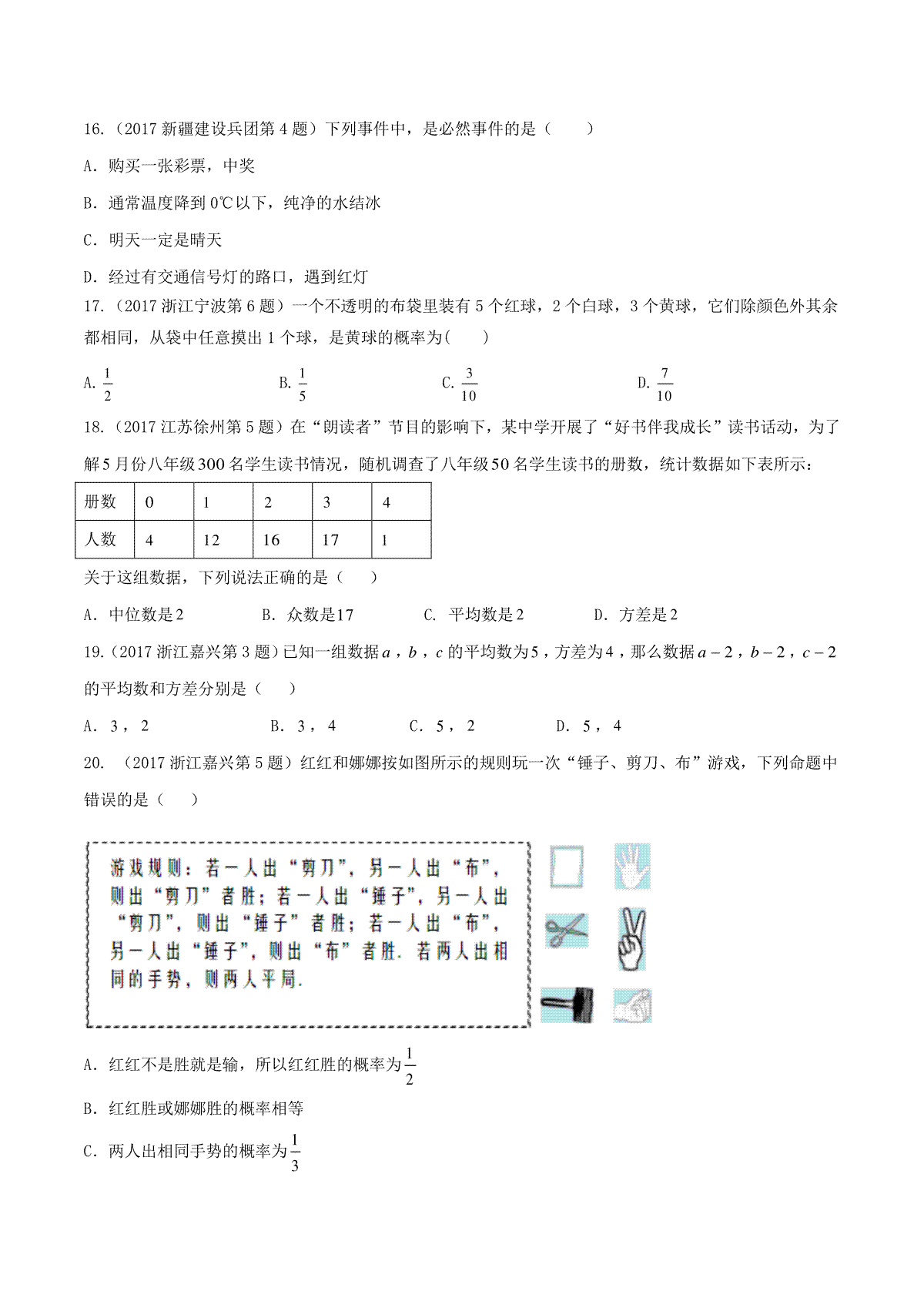 1.专题07 统计与概率(第01期)-2017年中考数学试题分项版解析汇编(原卷版)