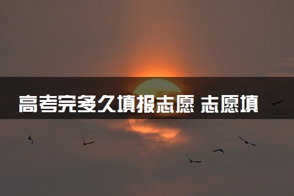 高考完后15天左右出分,各个省不同。出分后大约两三天时间就开始报志愿,提前批的先开始,这个要根据各省情况看。志愿填报时间较短,一般为3-5天左右。具体时间以教育考试院公布为准。