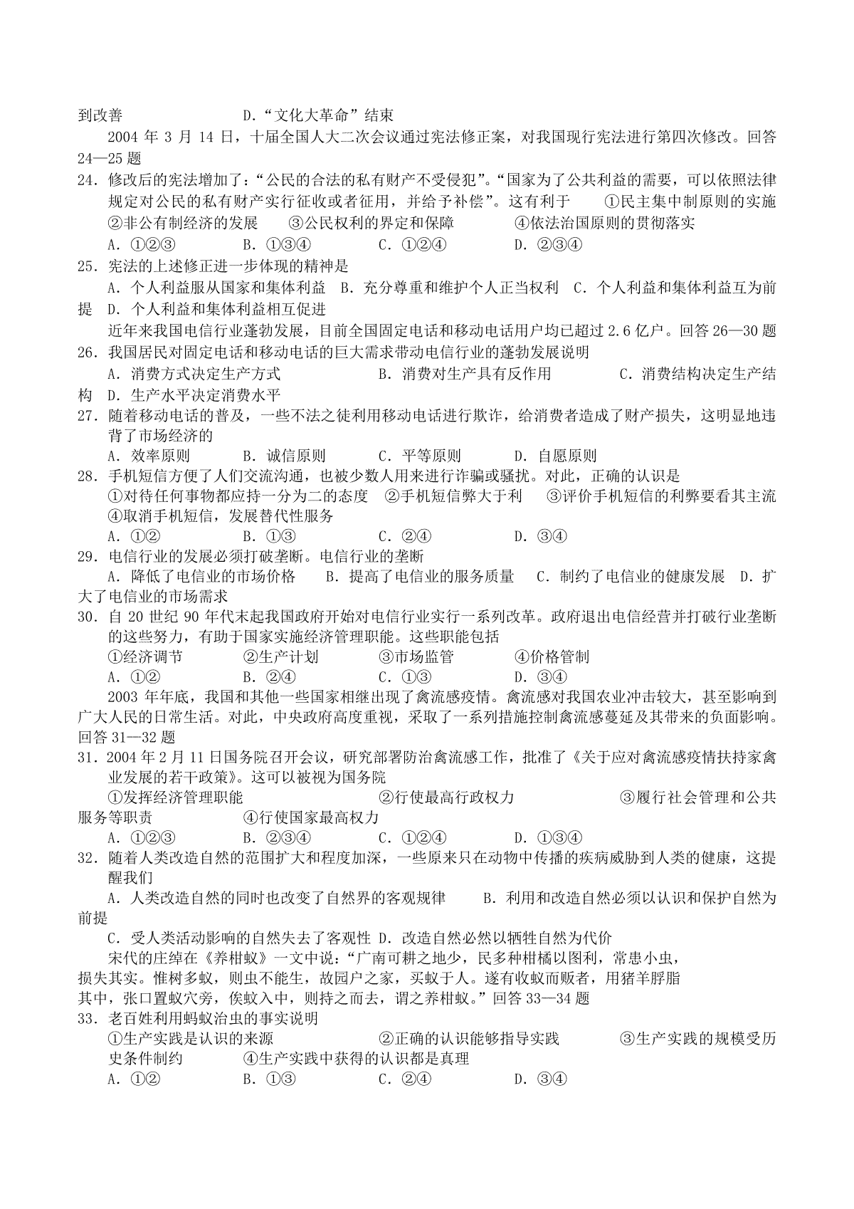 如果你想下载2004年全国卷II高考文科综合真题及答案DOC或PDF版,请点击本文末链接!