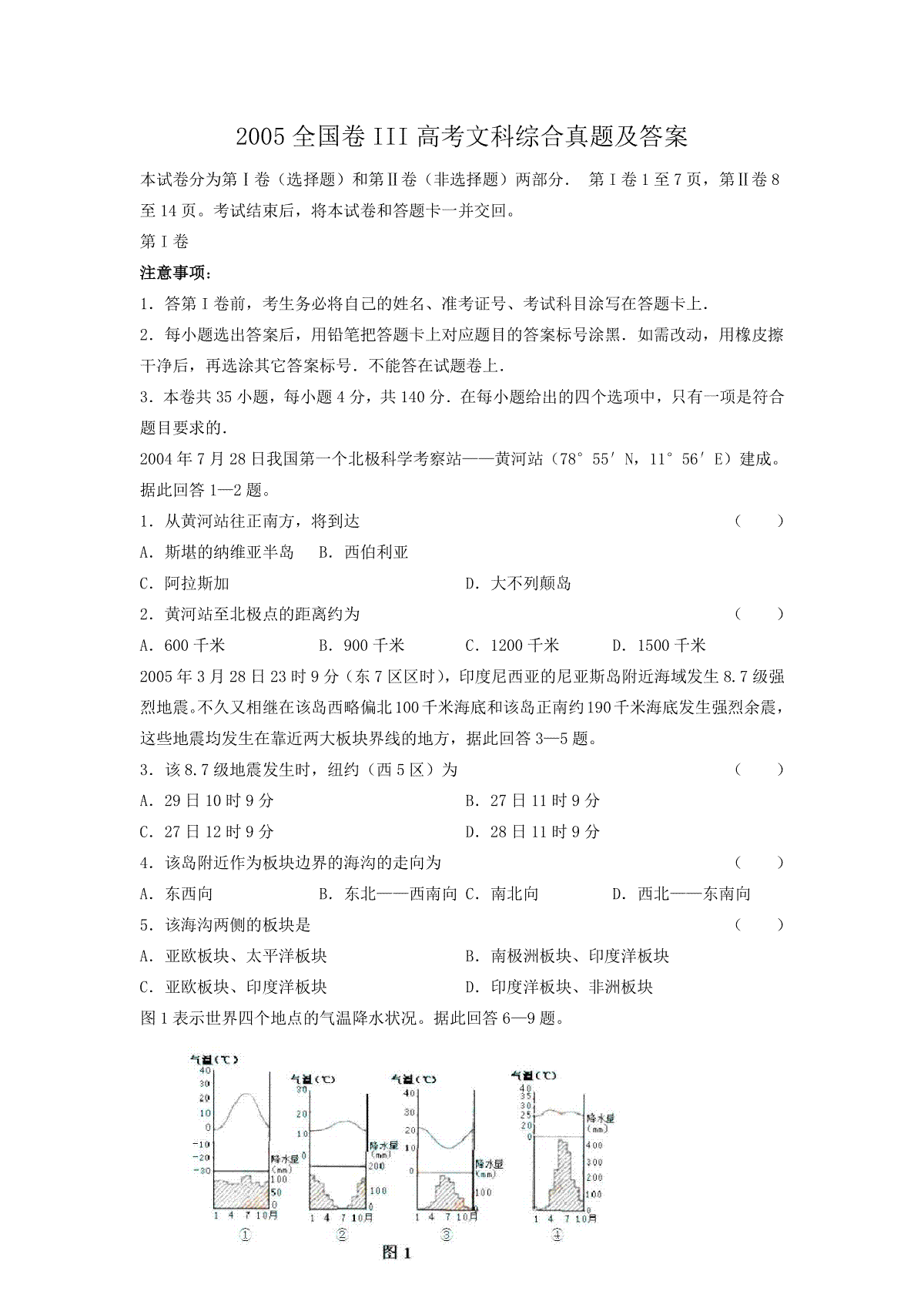 如果你想下载2005全国卷III高考文科综合真题及答案DOC或PDF版,请点击本文末链接!