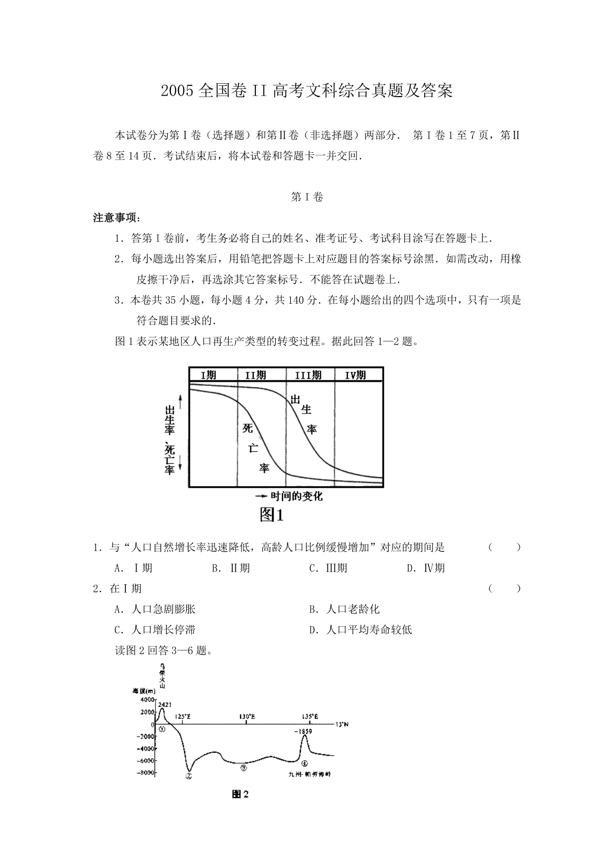 一、2005全国卷II高考文科综合真题及答案