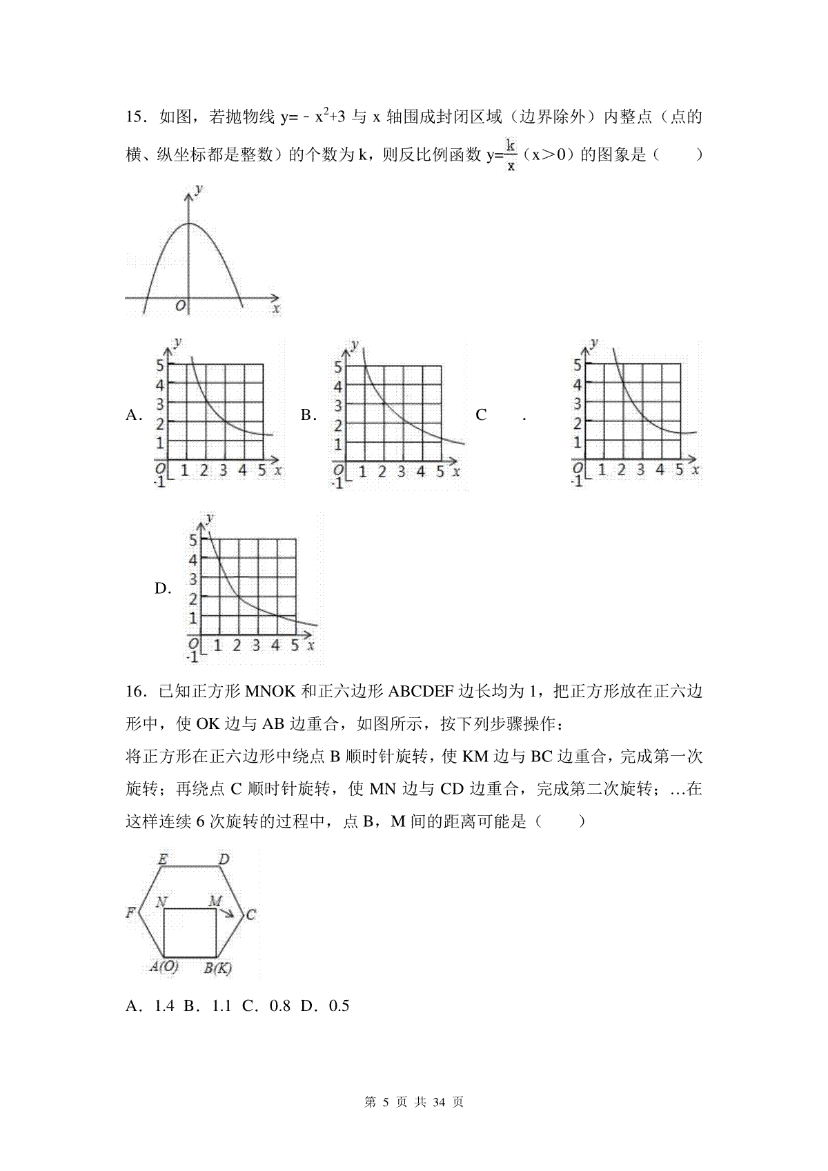 2016年河北省中考数学试题及答案