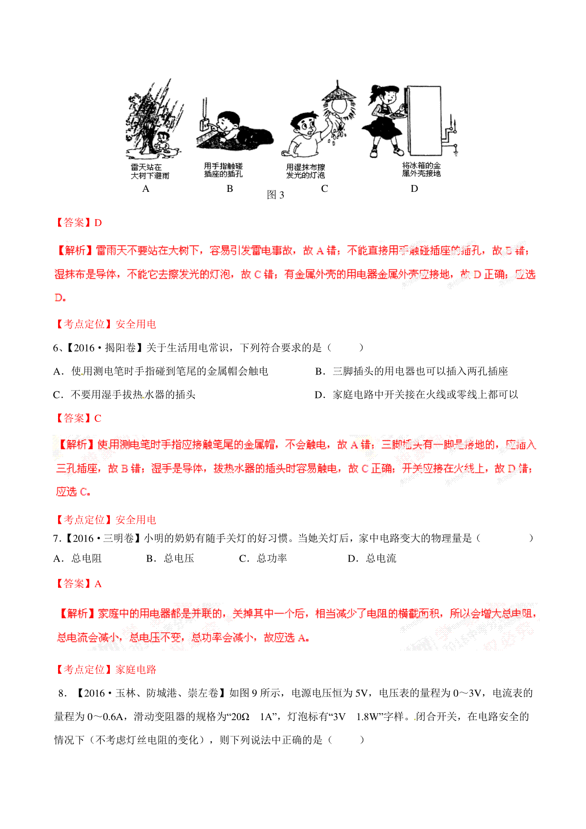 一、专题14 电功率和电热 安全用电(第02期)-2016年中考物理试题分项版解析汇编(解析版)