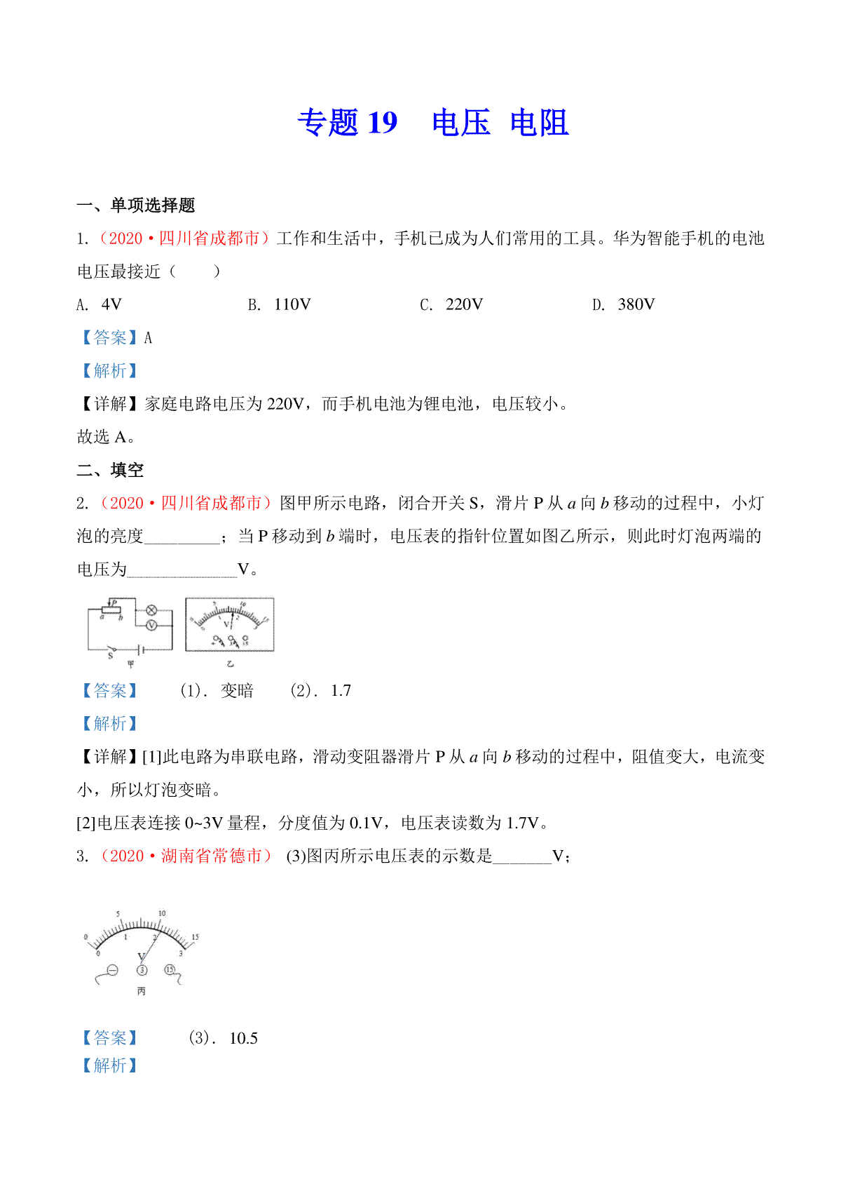 如果你想下载专题18 电压 电阻(解析版)DOC或PDF版,请点击本文末链接!