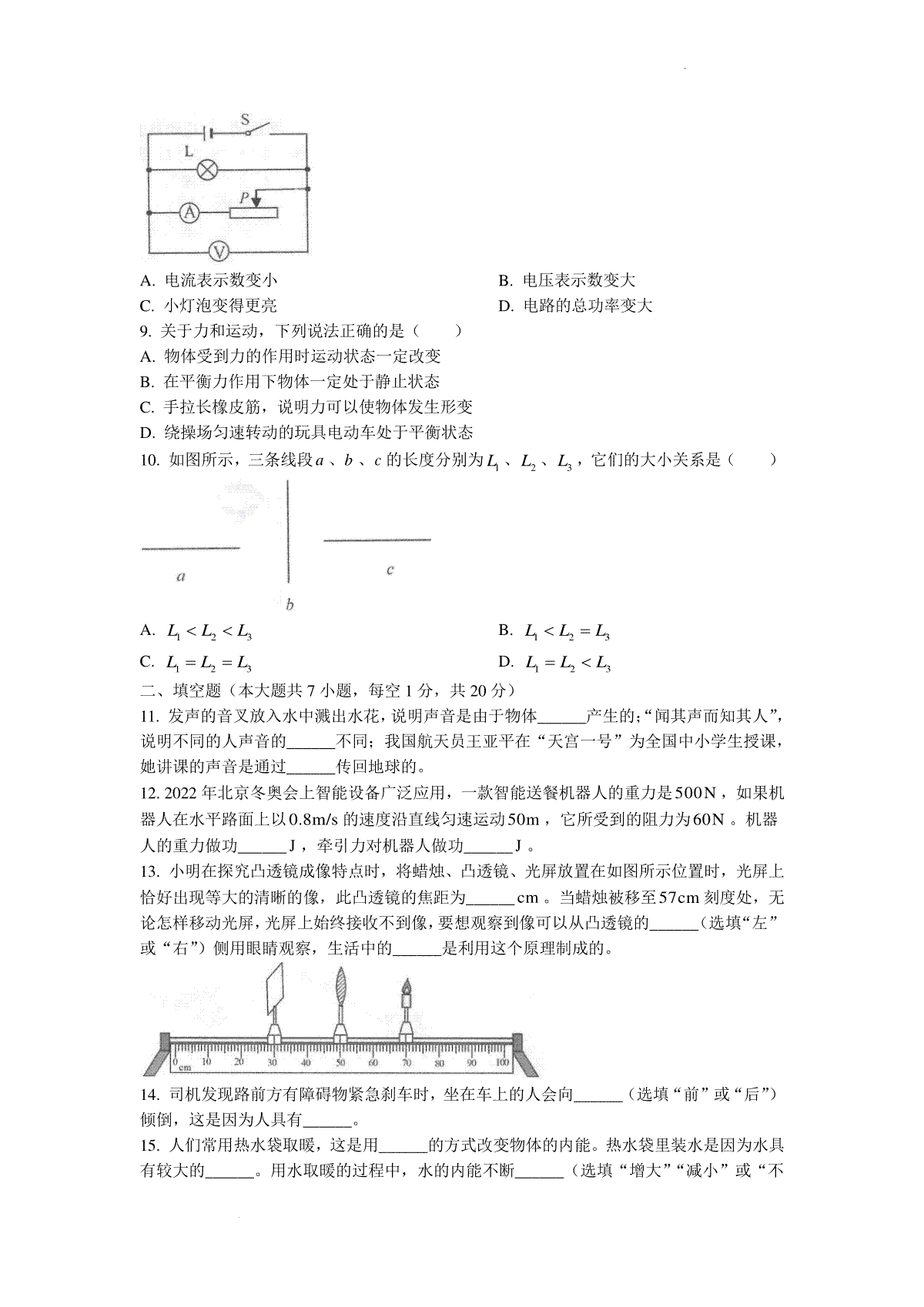 2.2021年苏州市中考物理试题及答案(word版)