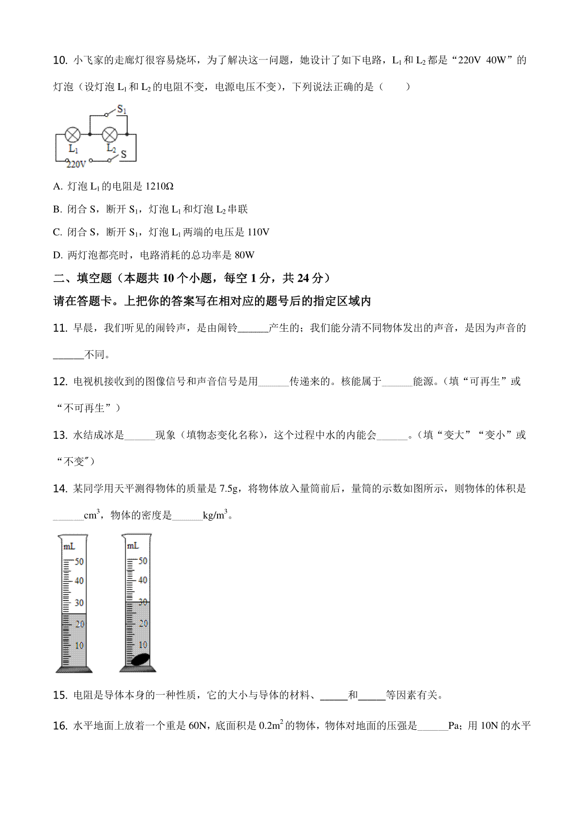 1.2020年黑龙江省绥化市中考物理试题(学生版)