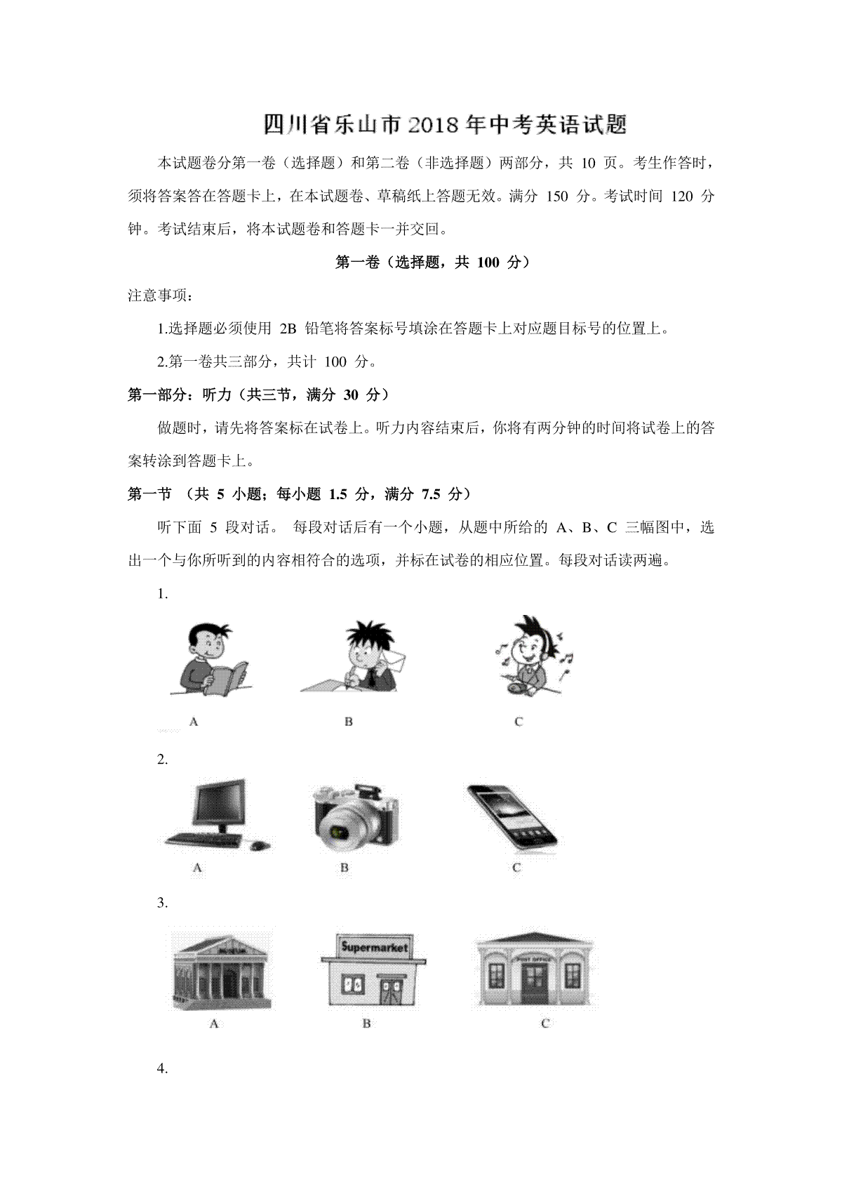 1.2018年四川省乐山市中考英语试卷及答案(word版)