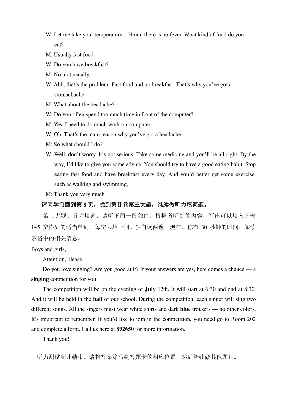 1.2018年济宁市中考英语A卷听力录音材料