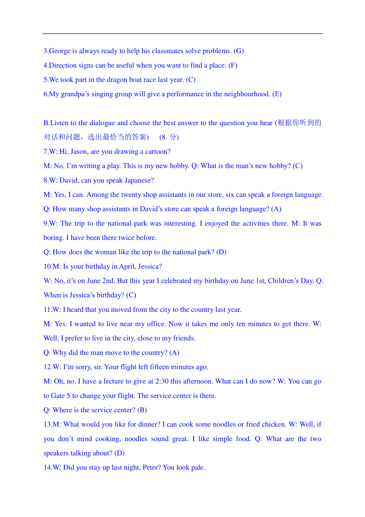 06 上海市-2020年各地中考英语听力真题合集于近期开考,本次考试对考生对知识的掌握参考价值大,为了方便大家复习掌握错题!小编在下文为大家准备了06 上海市-2020年各地中考英语听力真题合集试卷及答案解析详情,仅供考生参考。