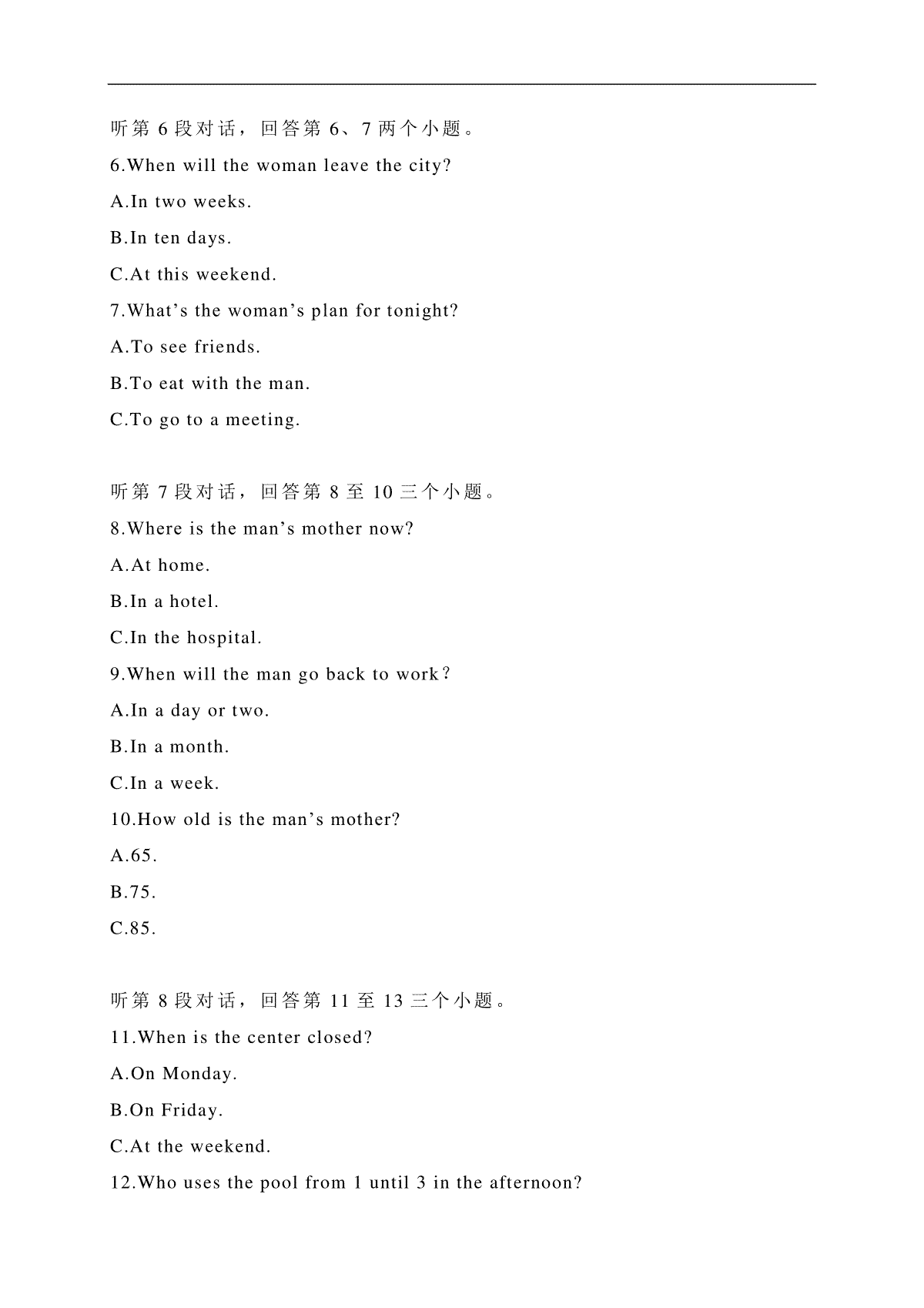 一、13 四川省宜宾市-2020年各地中考英语听力真题合集