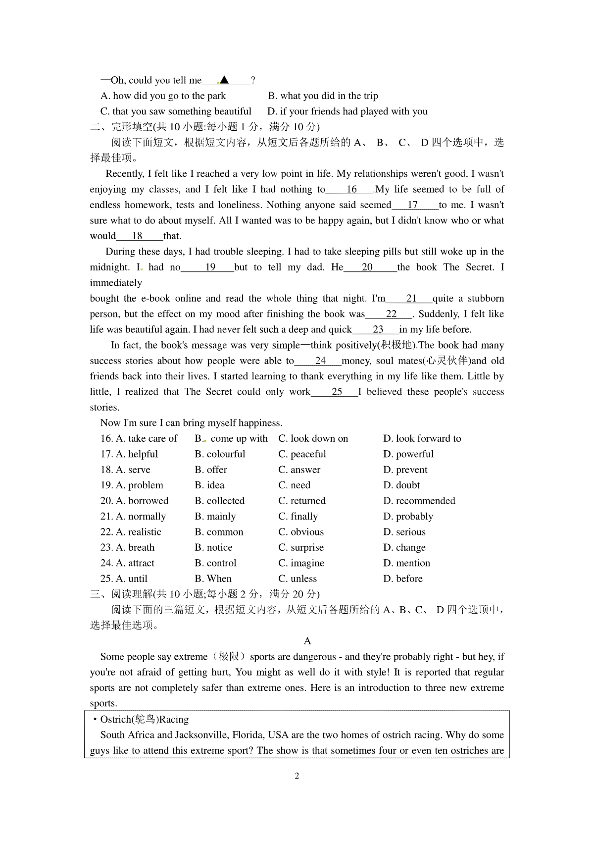 精品解析:湖北省黄冈市2020年中考英语试题(原卷版)