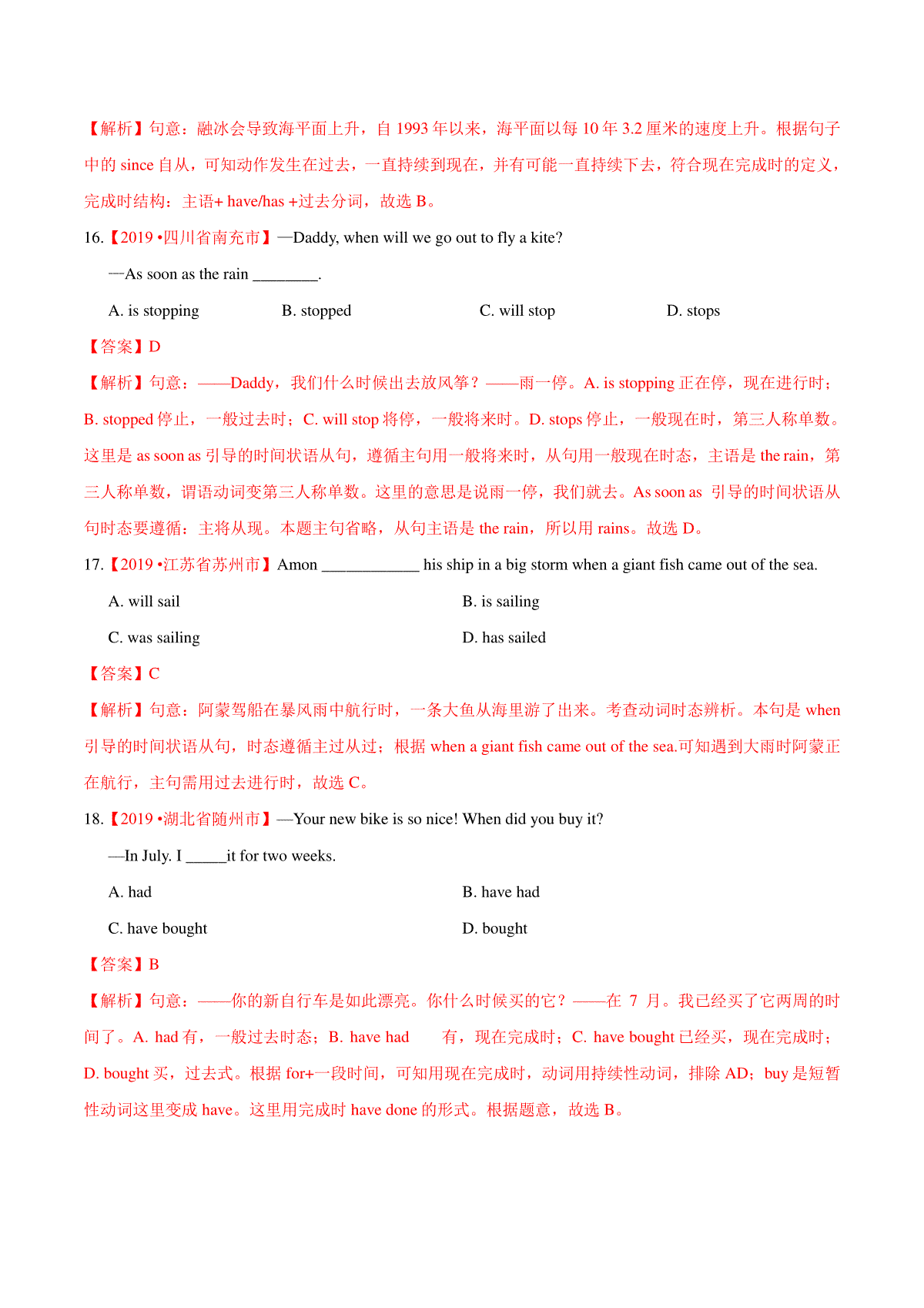 3.专题09 时态(第01期)2020年中考真题英语分项汇编(解析版)