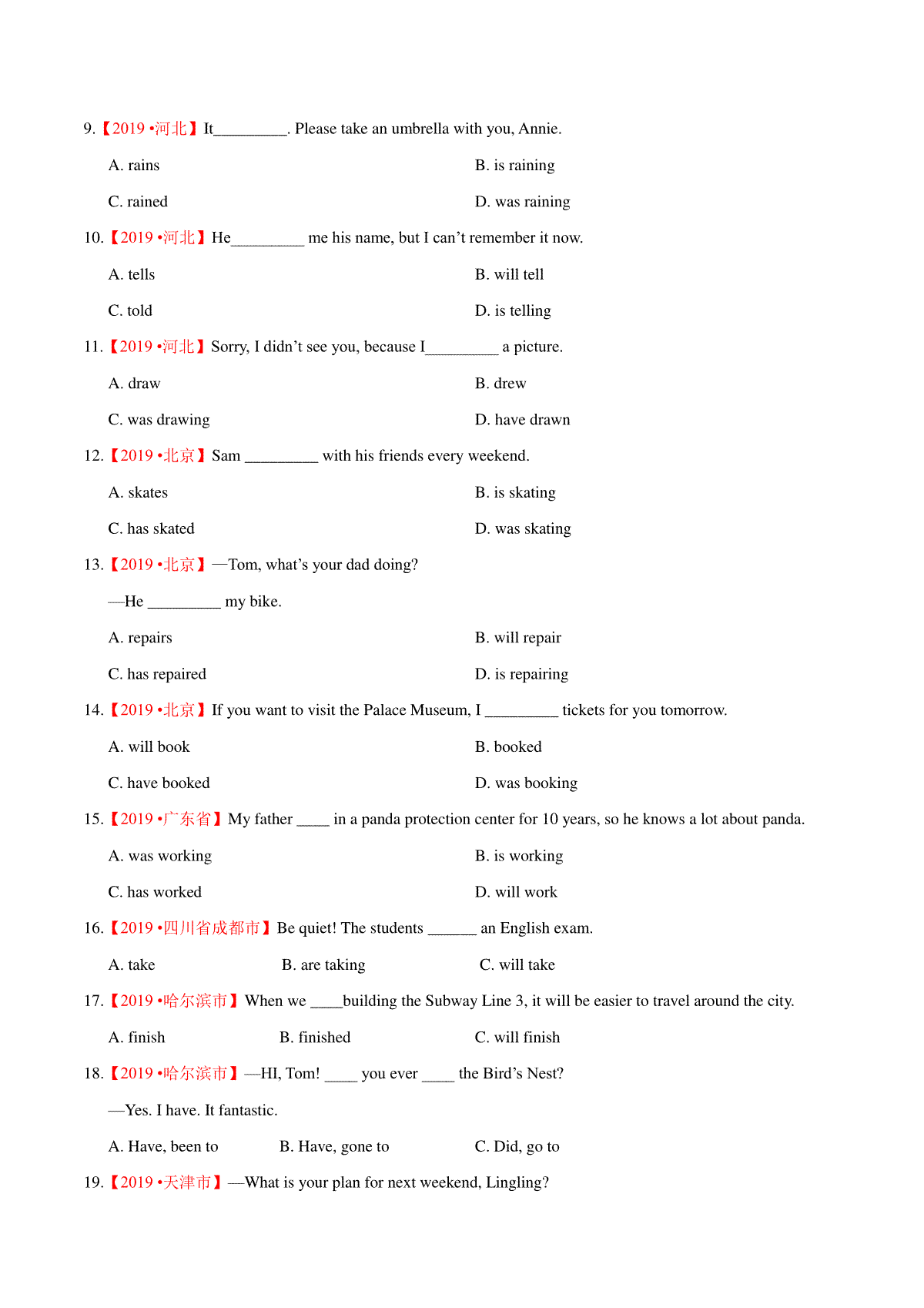 2.专题09 时态(第01期)2020年中考真题英语分项汇编(解析版)