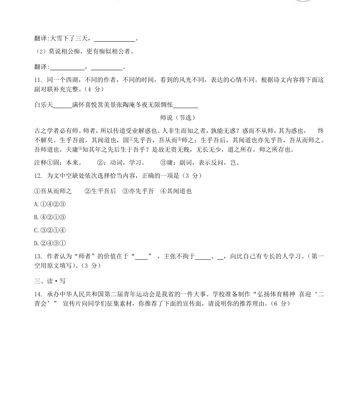 如果你想下载2019年山西省中考语文试题及答案DOC或PDF版,请点击本文末链接!